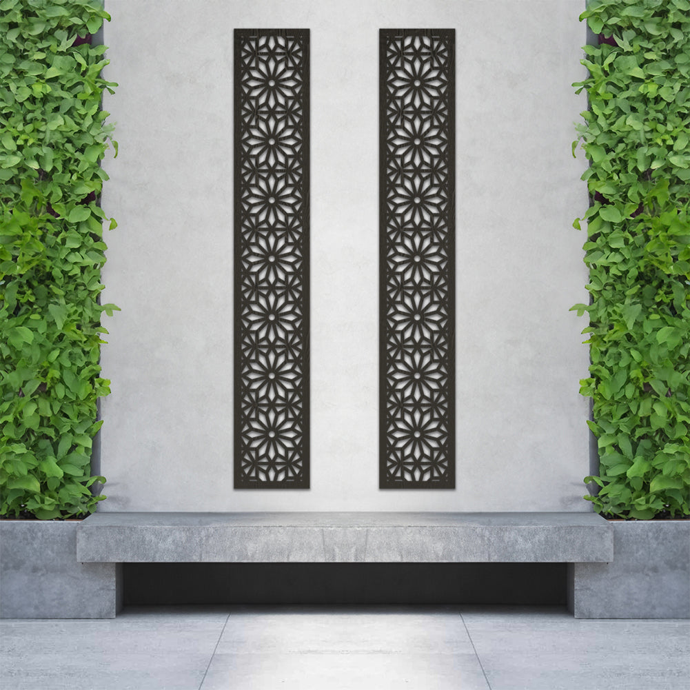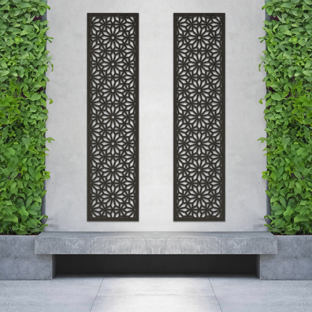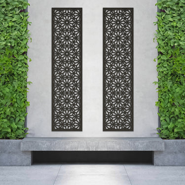 Dahlia is ideal if you want privacy without blocking light. Its laser-cut floral-inspired design allows light and shadow to move through the panel, creating depth and interest while still offering definition.