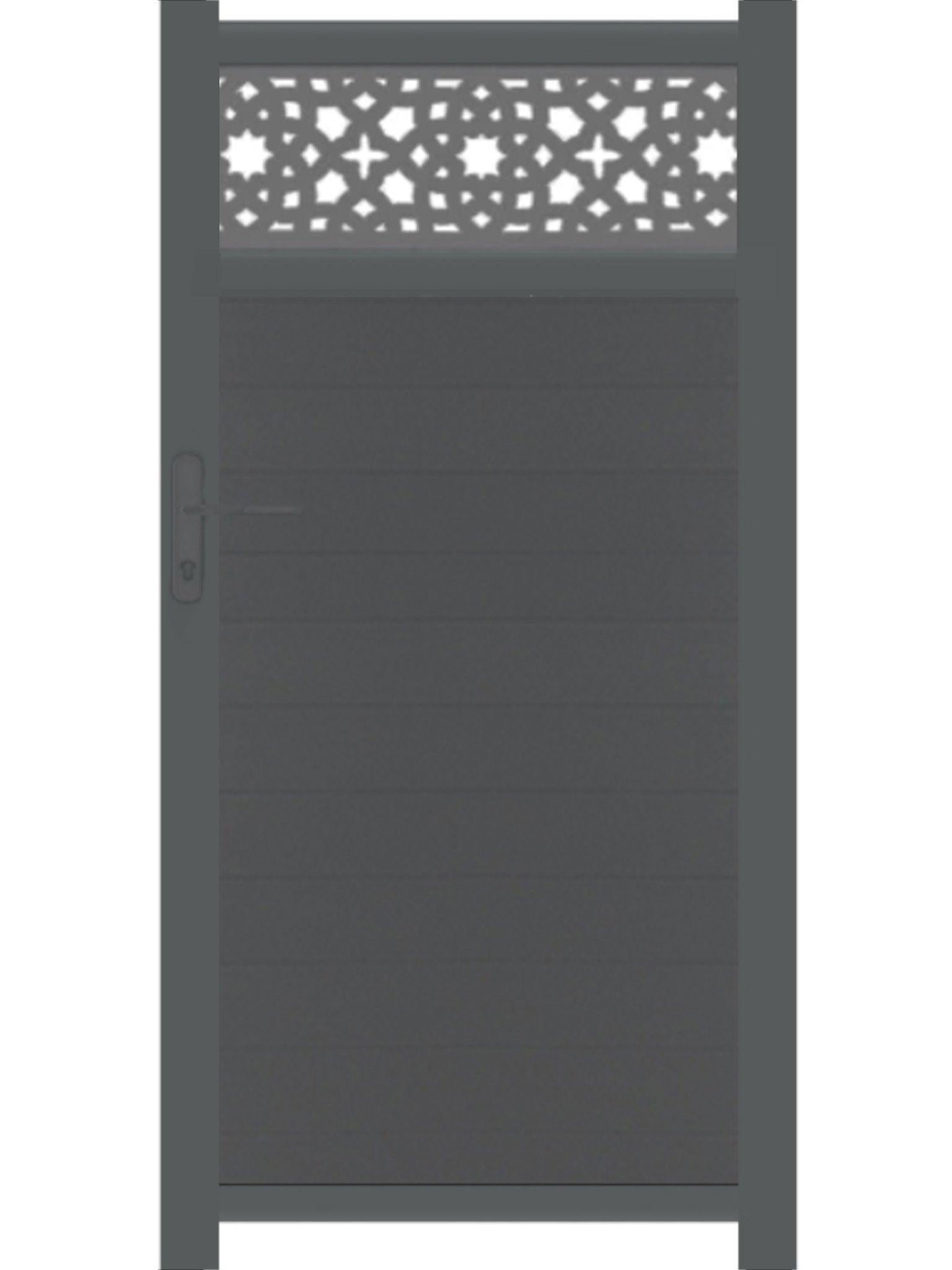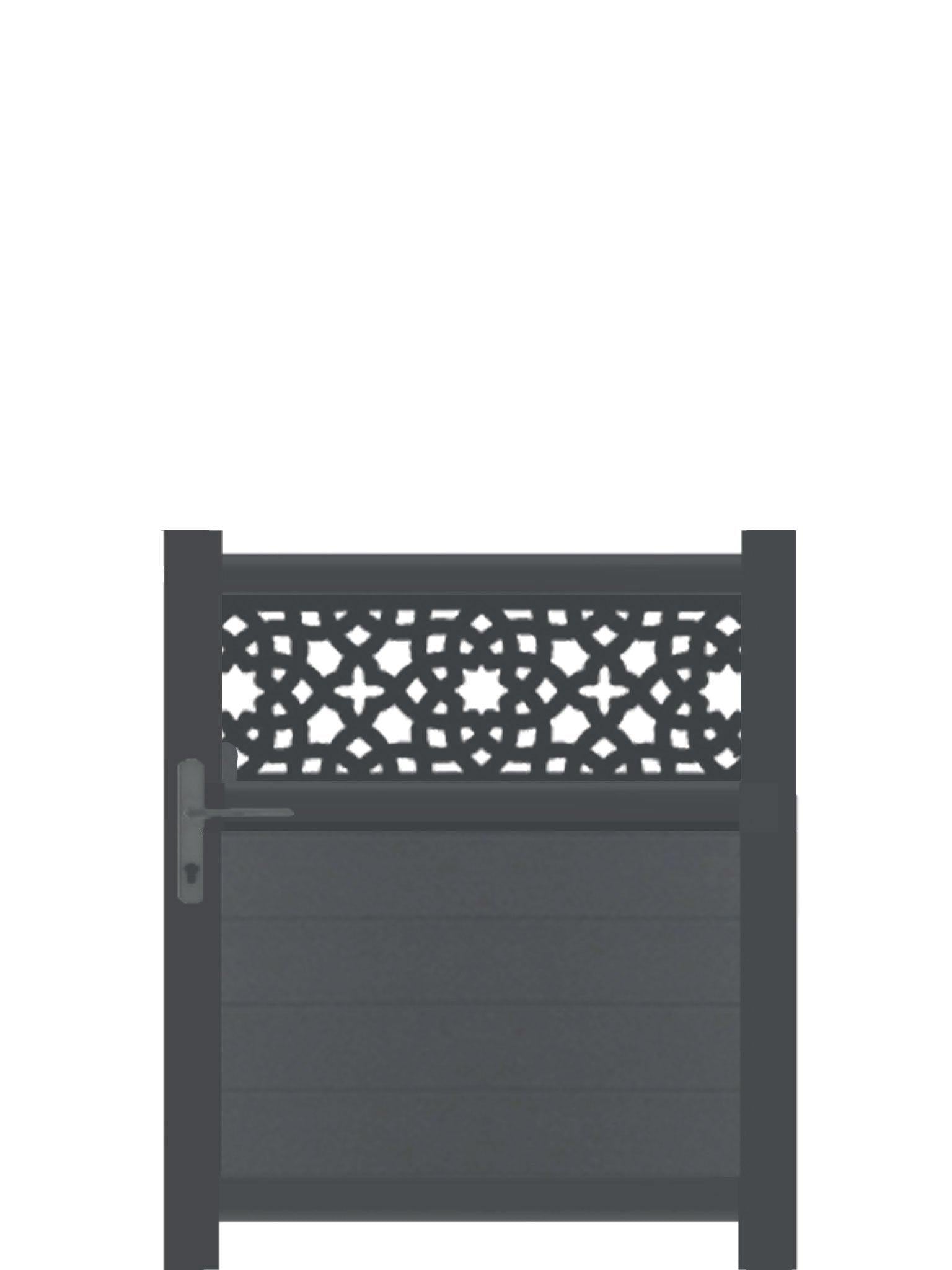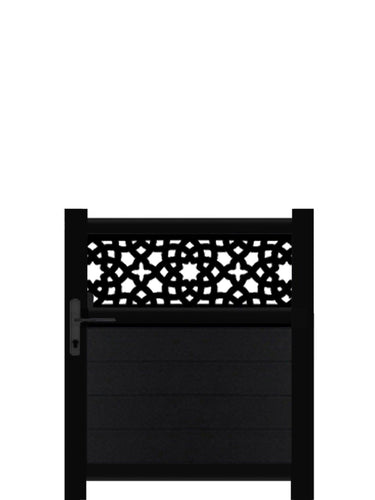 This stunning trellis gate is designed to gather both privacy and style with the opacity of the door and the cut designs on top. The Alhambra driveway gate offers a sumptuous accent for your garden, giving a spark of escape with its Moroccan architecture's inspired design. Zero maintenance, like everything we do!