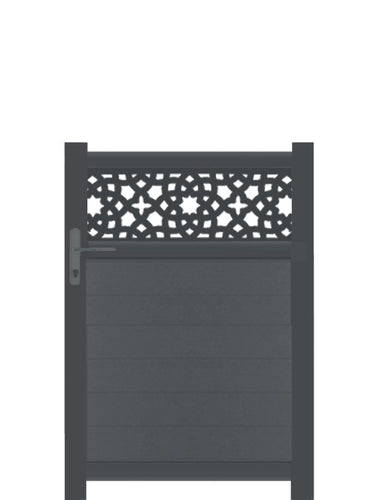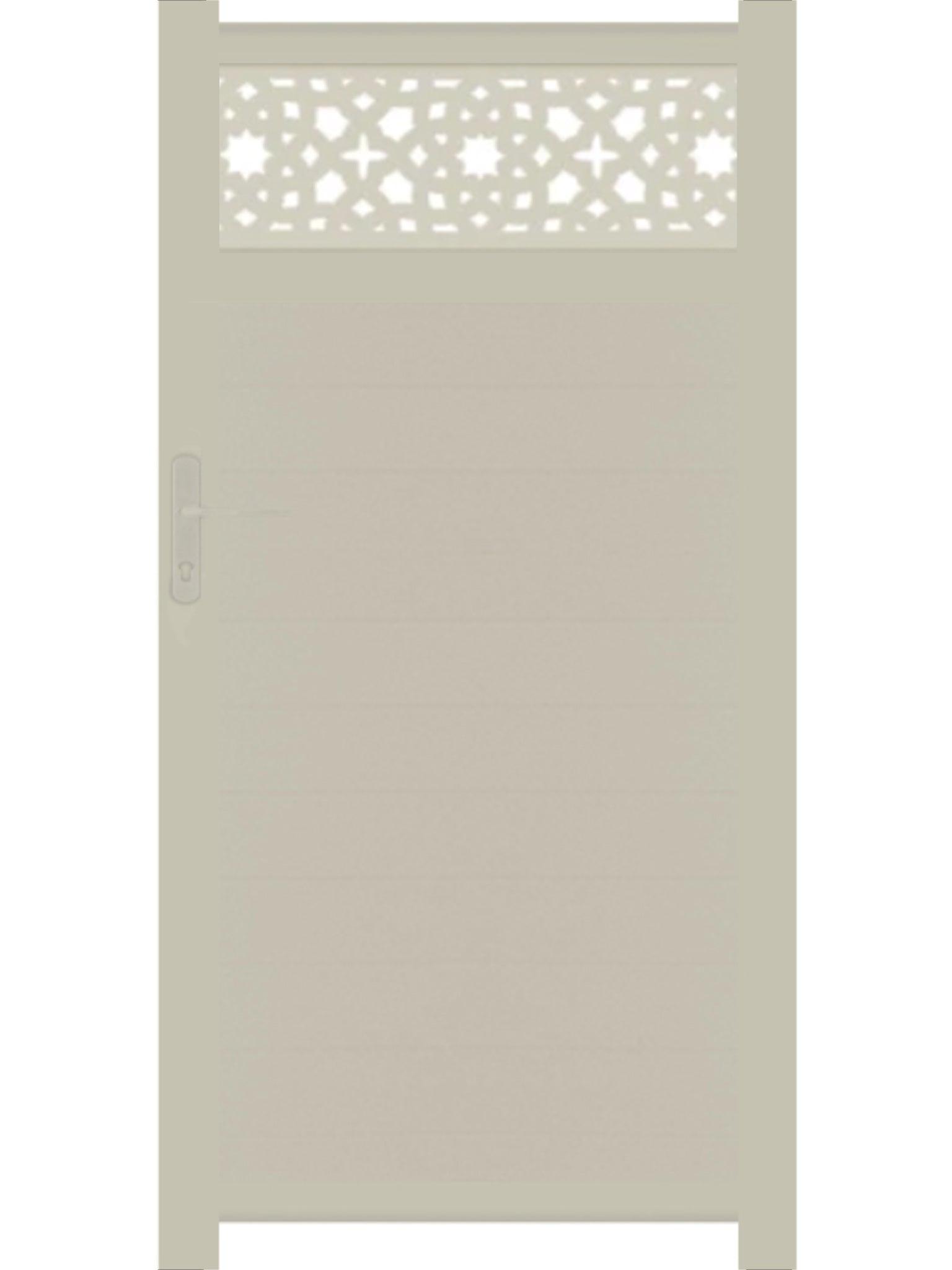 This stunning trellis gate is designed to gather both privacy and style with the opacity of the door and the cut designs on top. The Alhambra driveway gate offers a sumptuous accent for your garden, giving a spark of escape with its Moroccan architecture's inspired design. Zero maintenance, like everything we do!