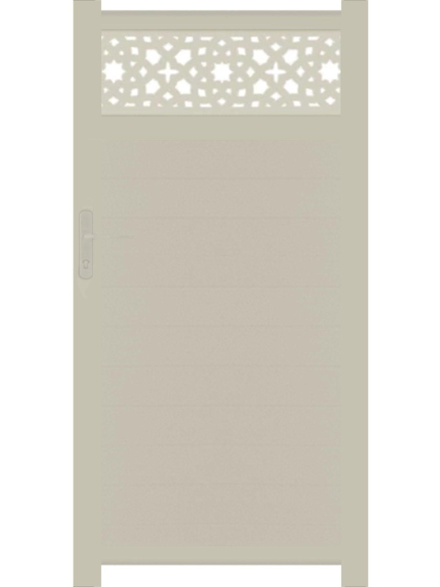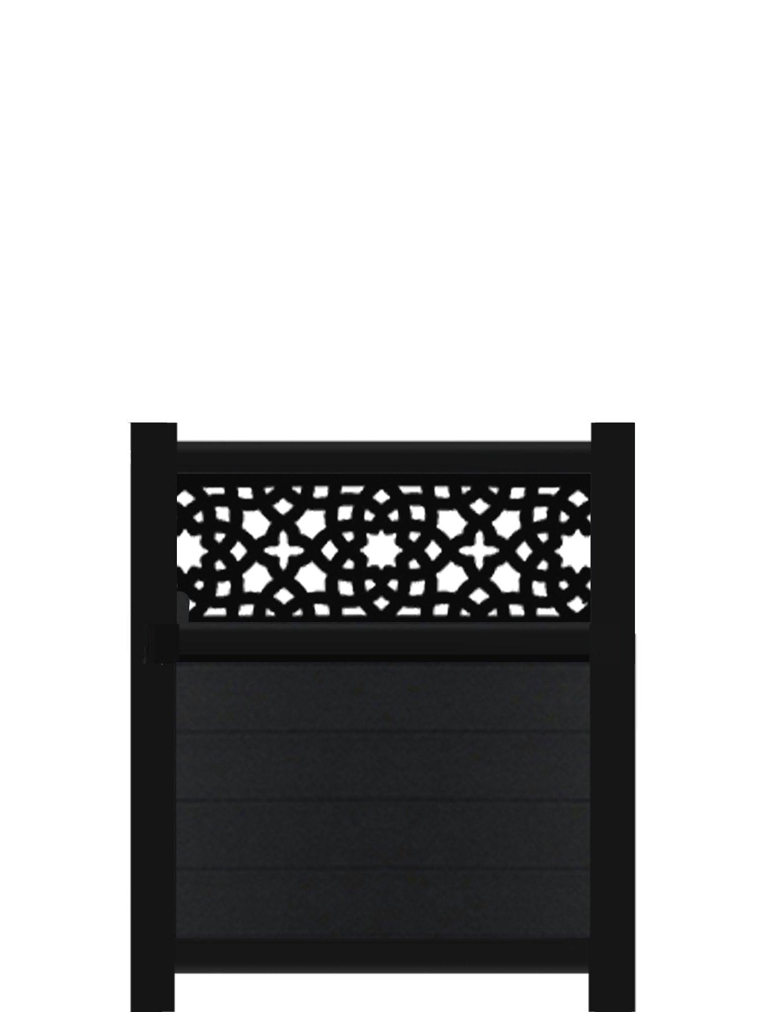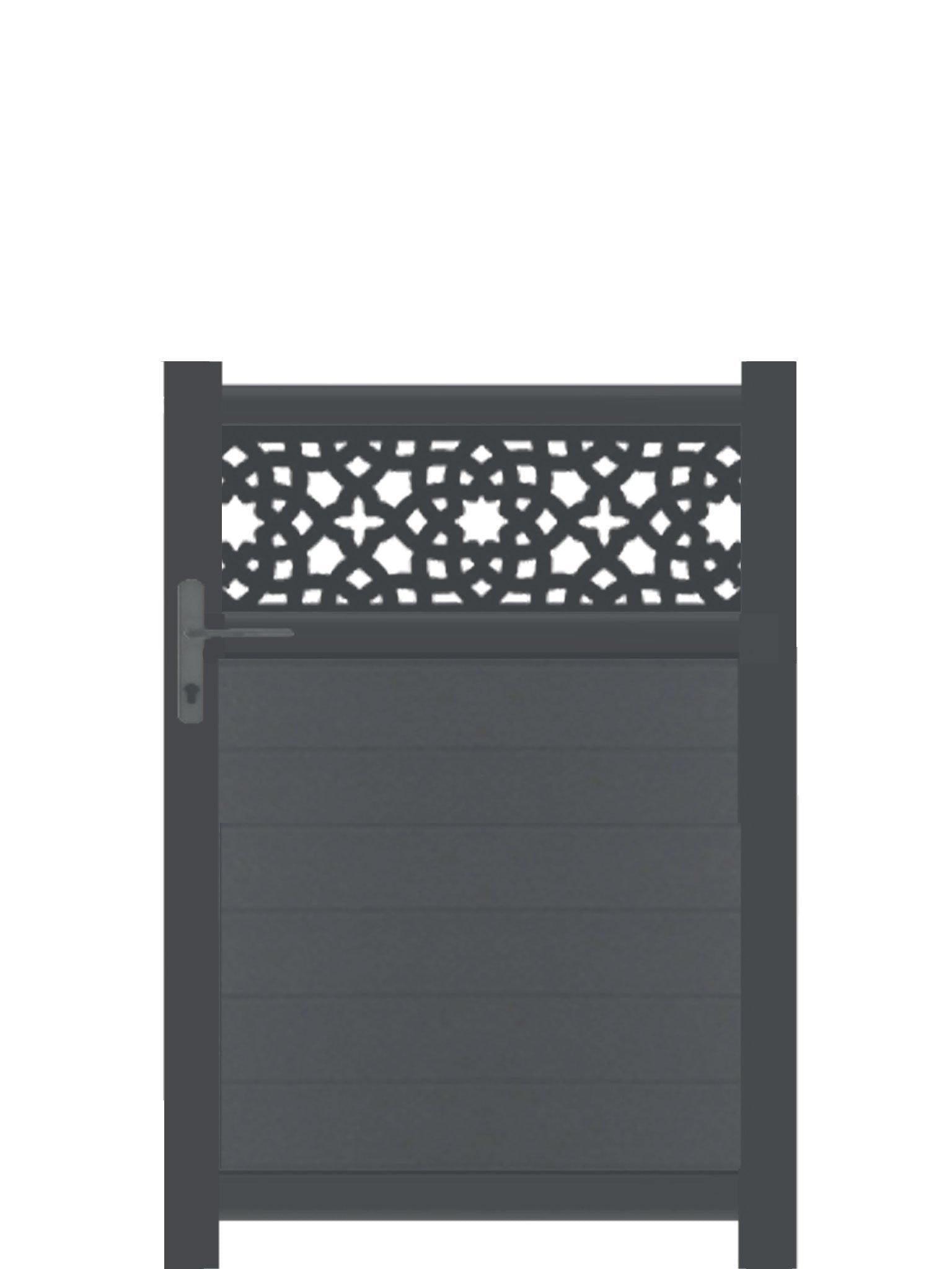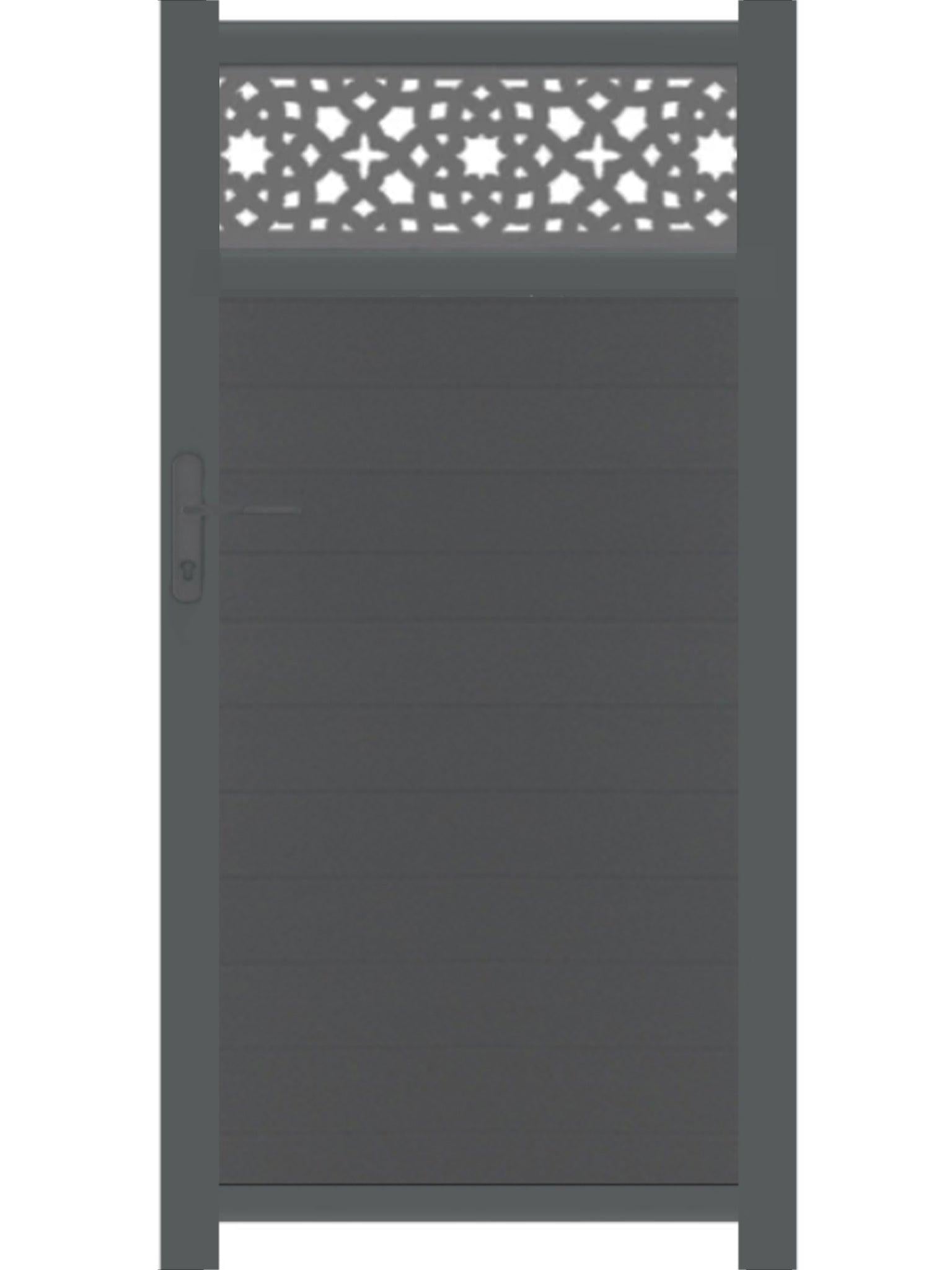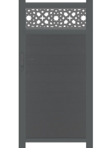 Stunning trellis gate designed to gather both privacy and style with the opacity of the door and the cut designs on top. The Alhambra driveway gate offers a sumptuous accent for your garden, giving a spark of escape with its Moroccan architecture's inspired design. Zero maintenance, like everything we do!