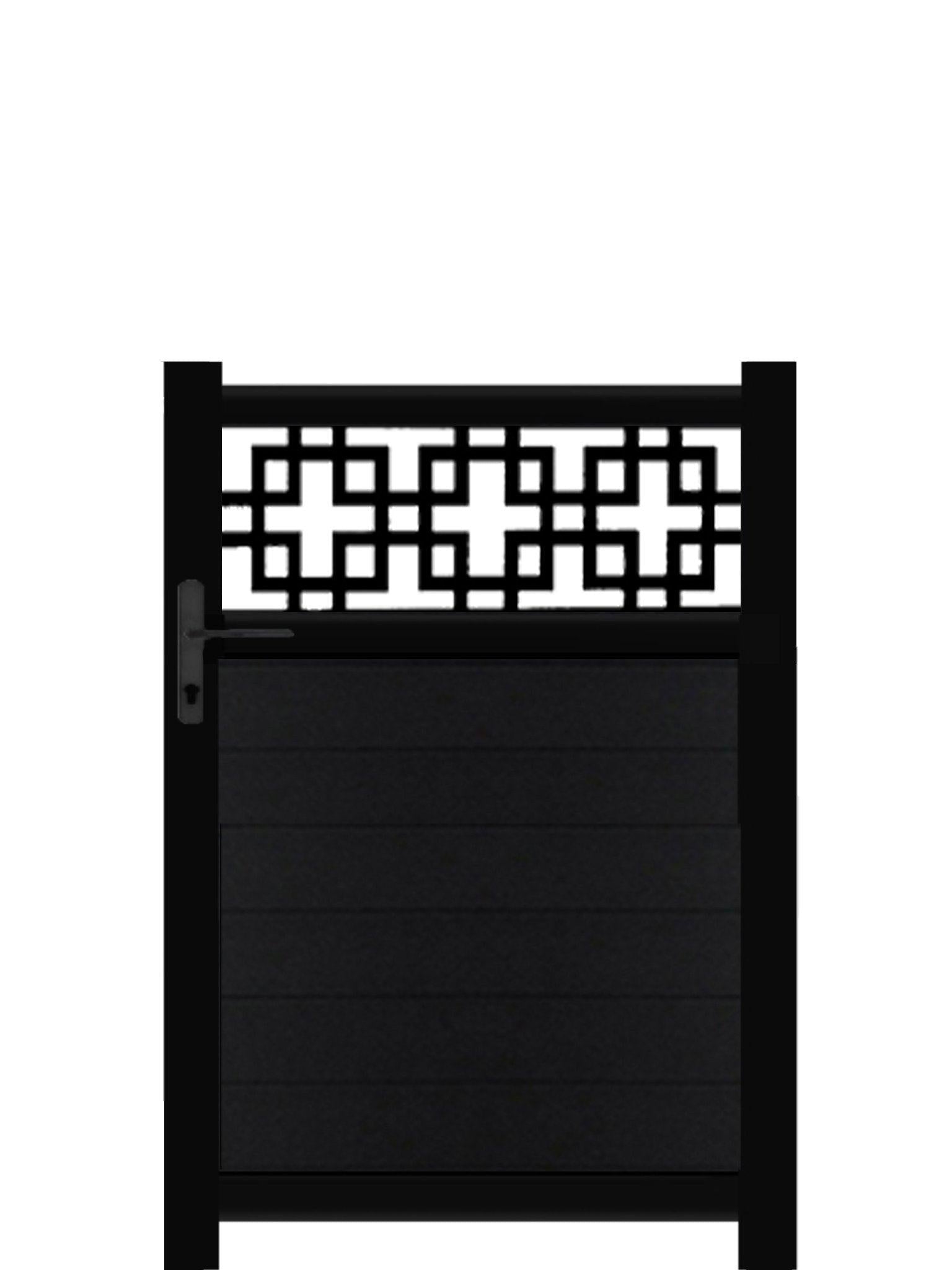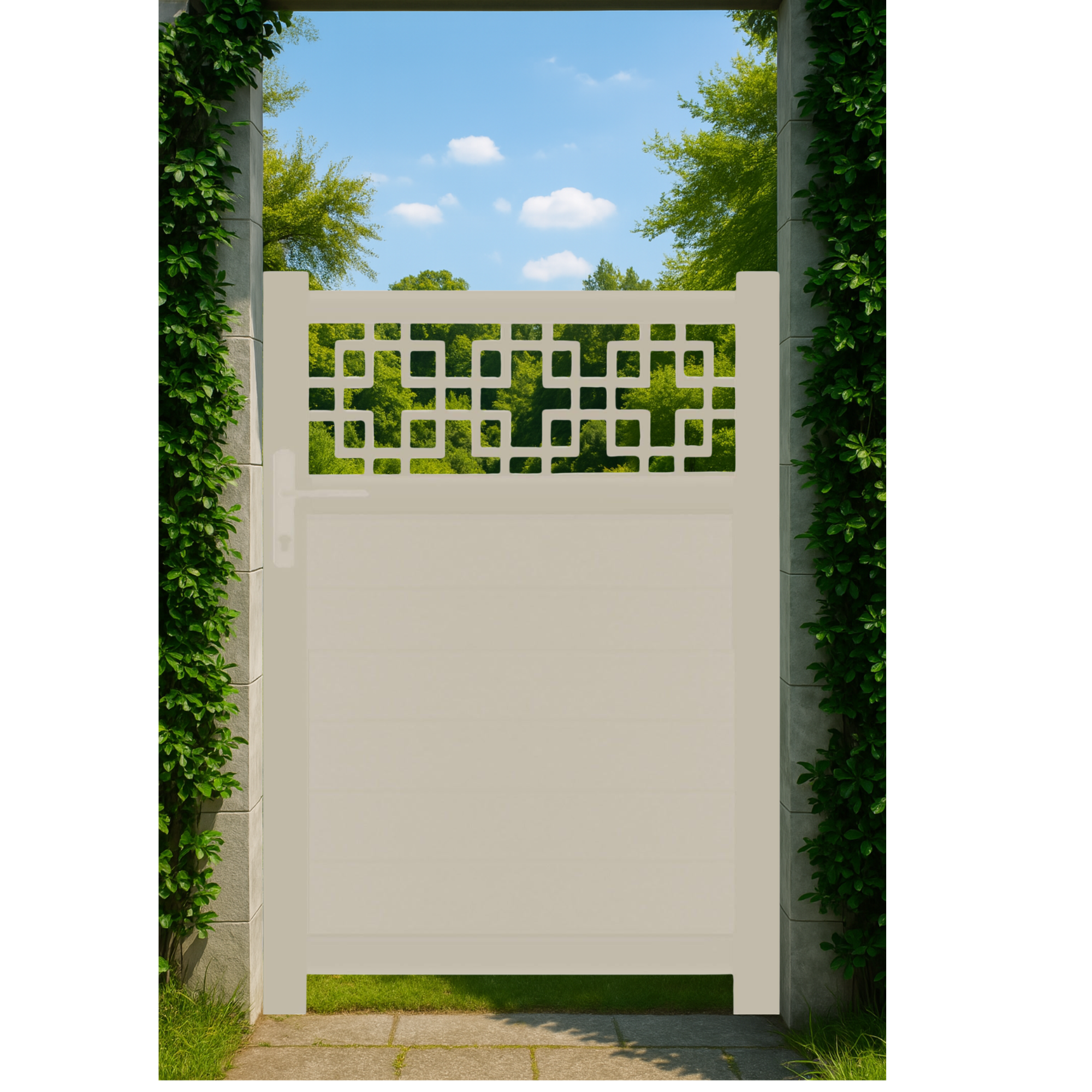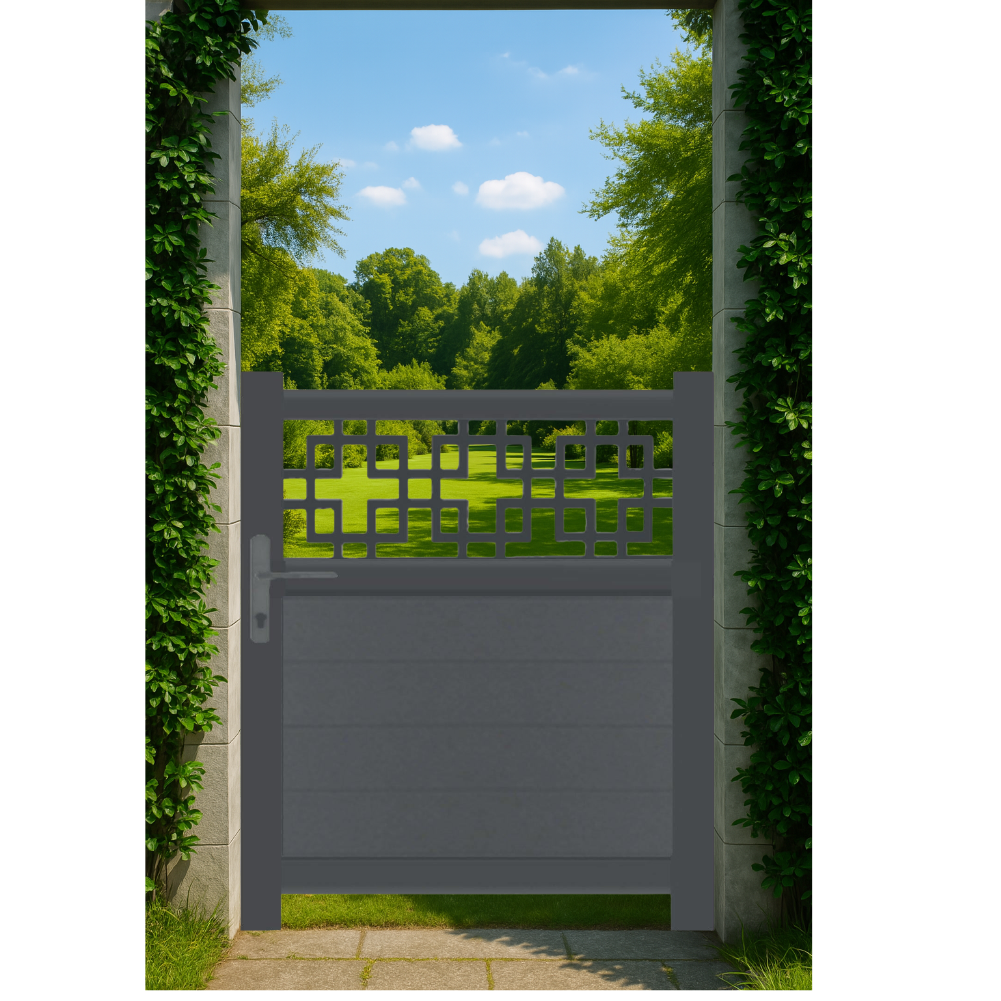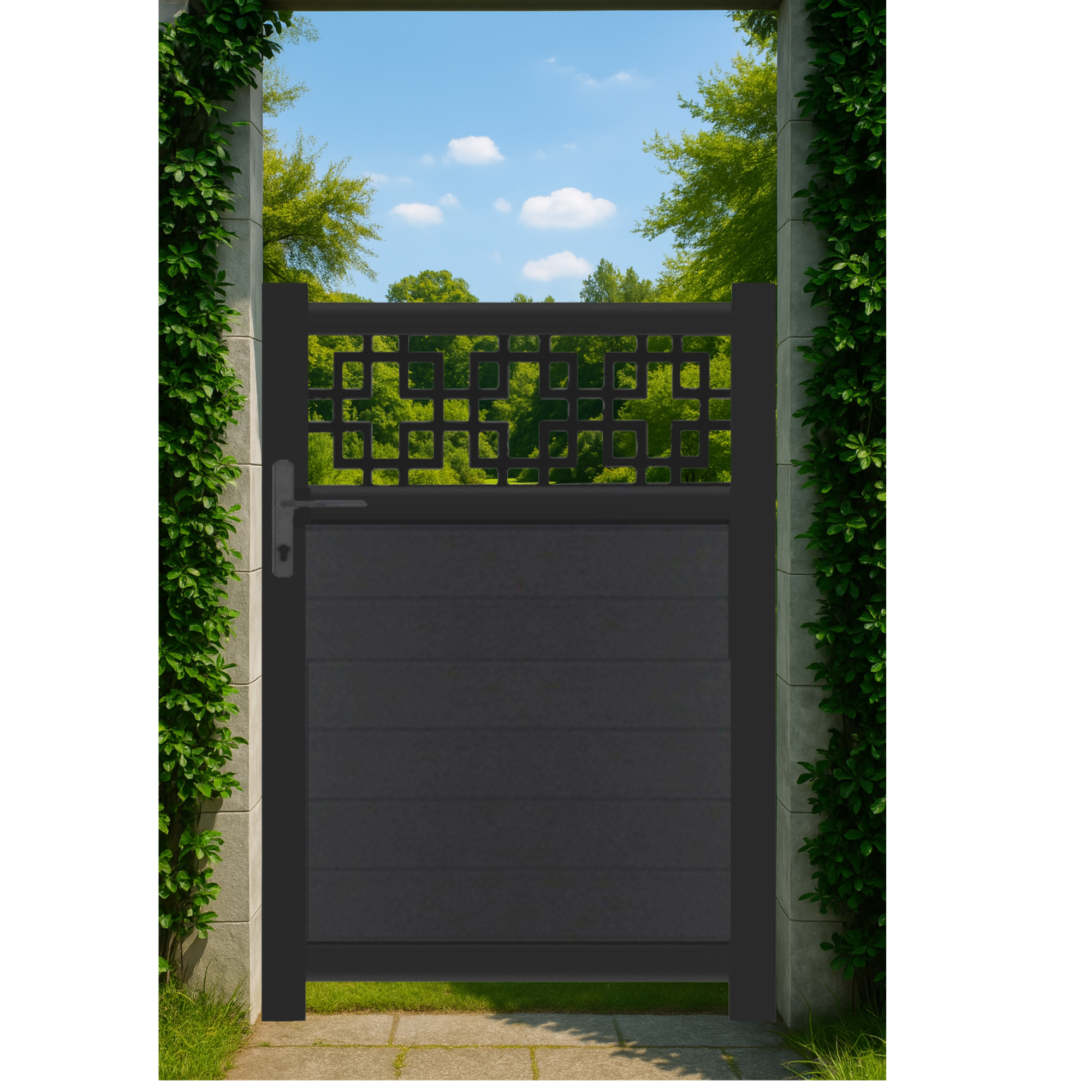 Stunning trellis gate designed to gather both privacy and style with the opacity of the door and the cut designs on top. The Cubed pedestrian gate offers a gorgeous accent for your garden evoking a fresh take on gates with its modern geometric design. Zero maintenance, like everything we do!