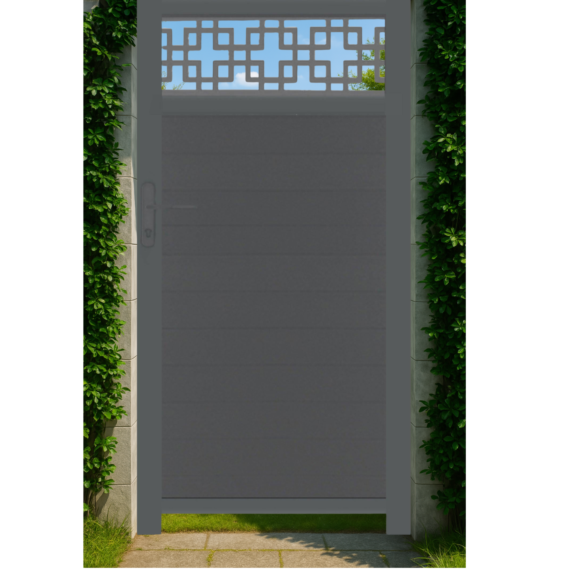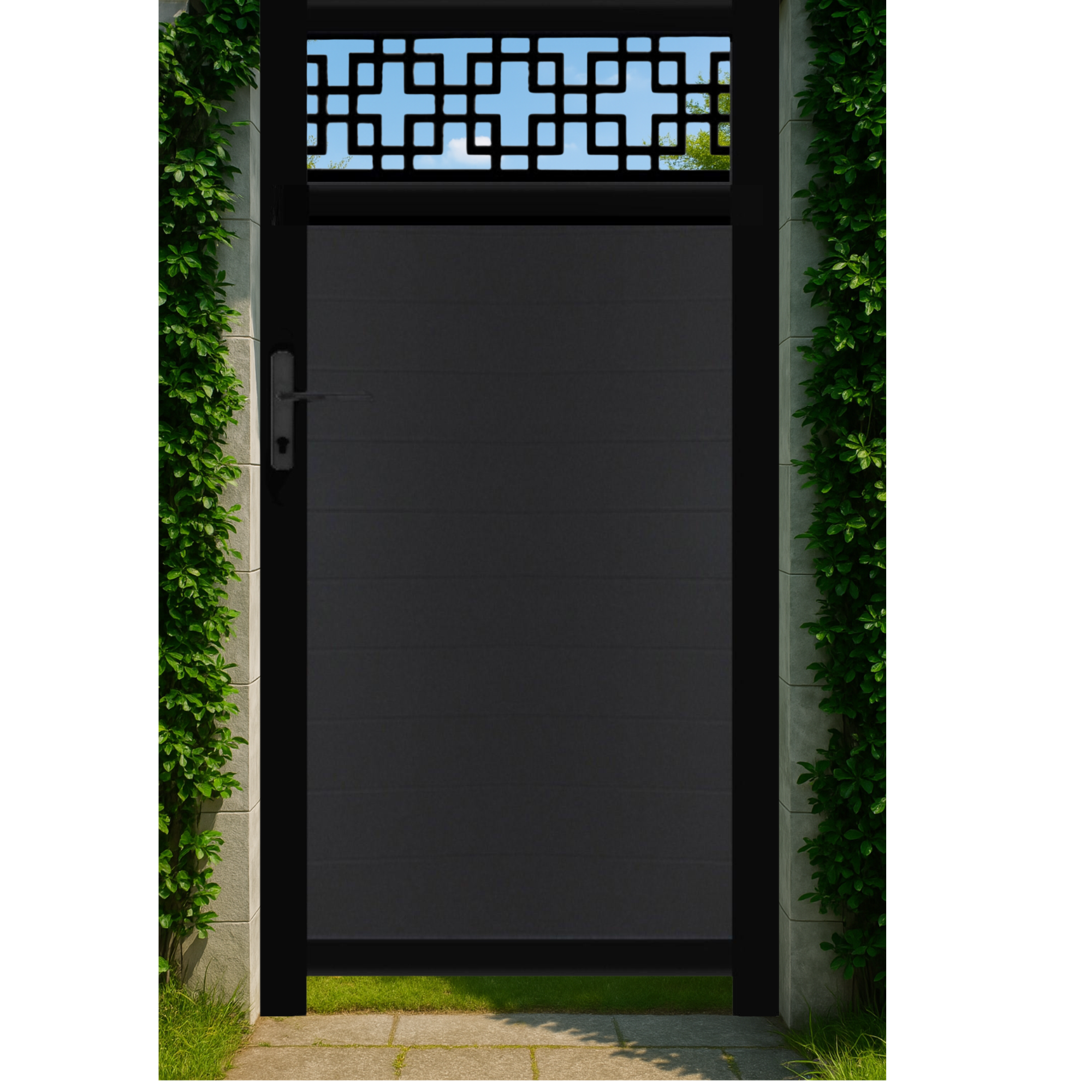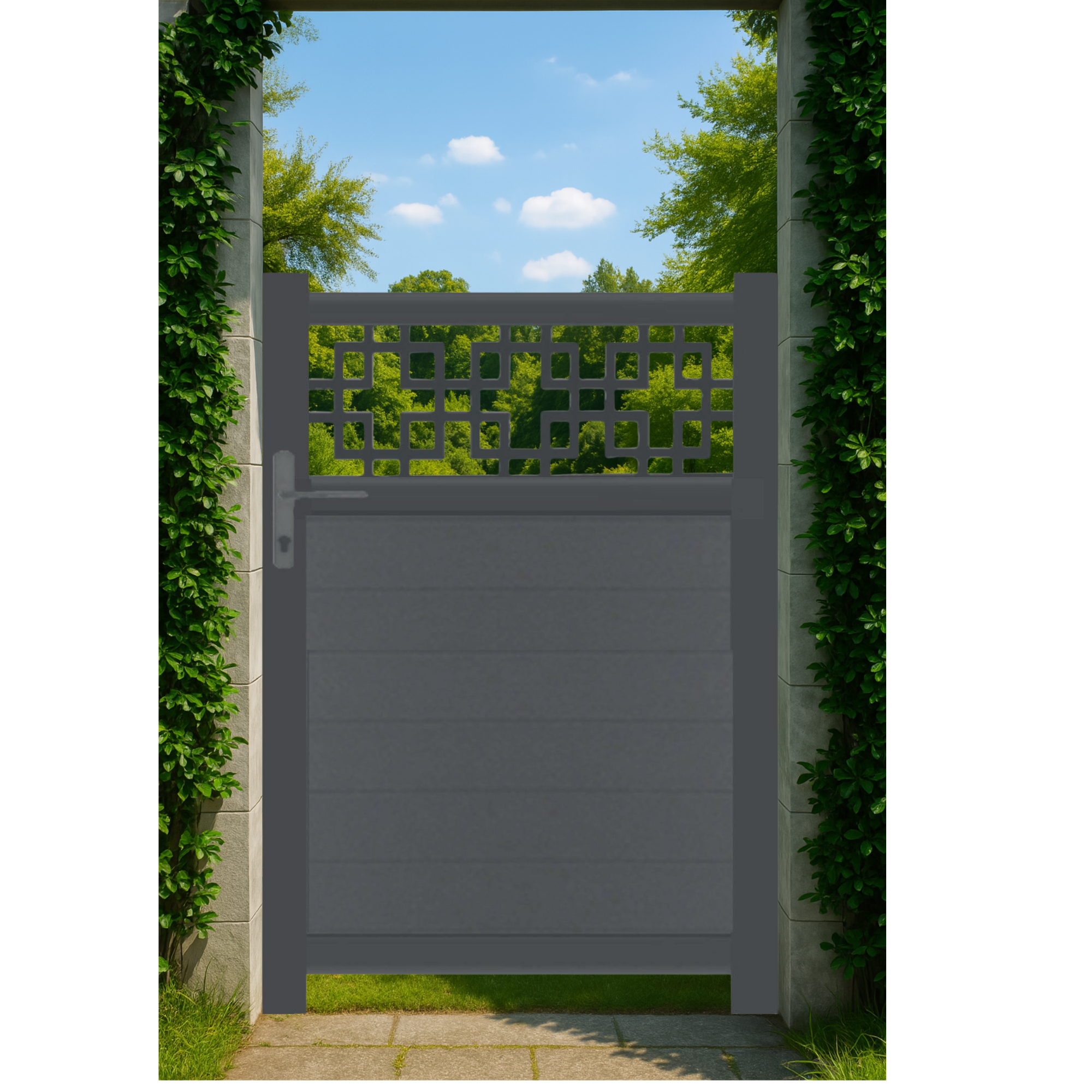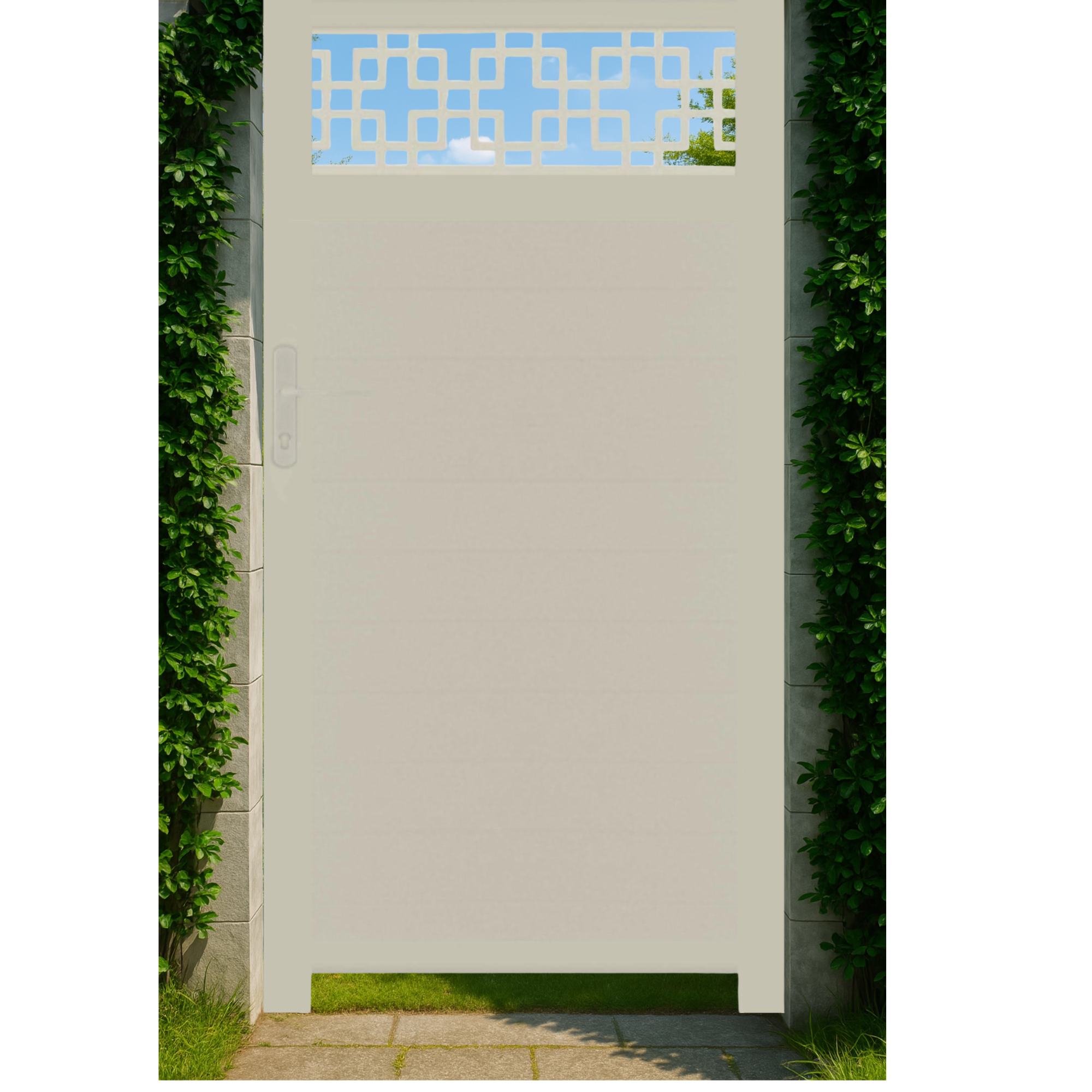 Stunning trellis gate designed to gather both privacy and style with the opacity of the door and the cut designs on top. The Cubed pedestrian gate offers a gorgeous accent for your garden evoking a fresh take on gates with its modern geometric design. Zero maintenance, like everything we do!