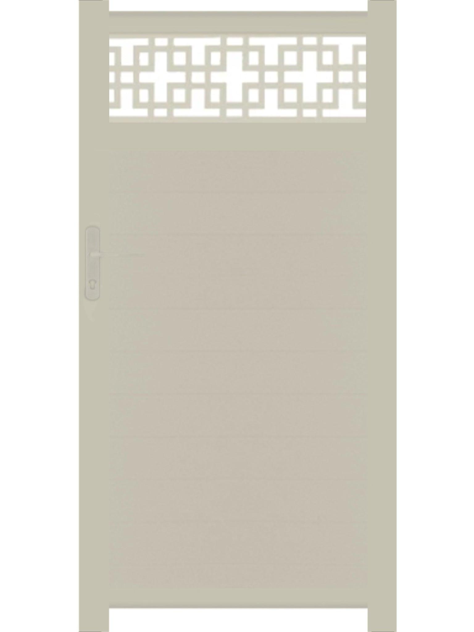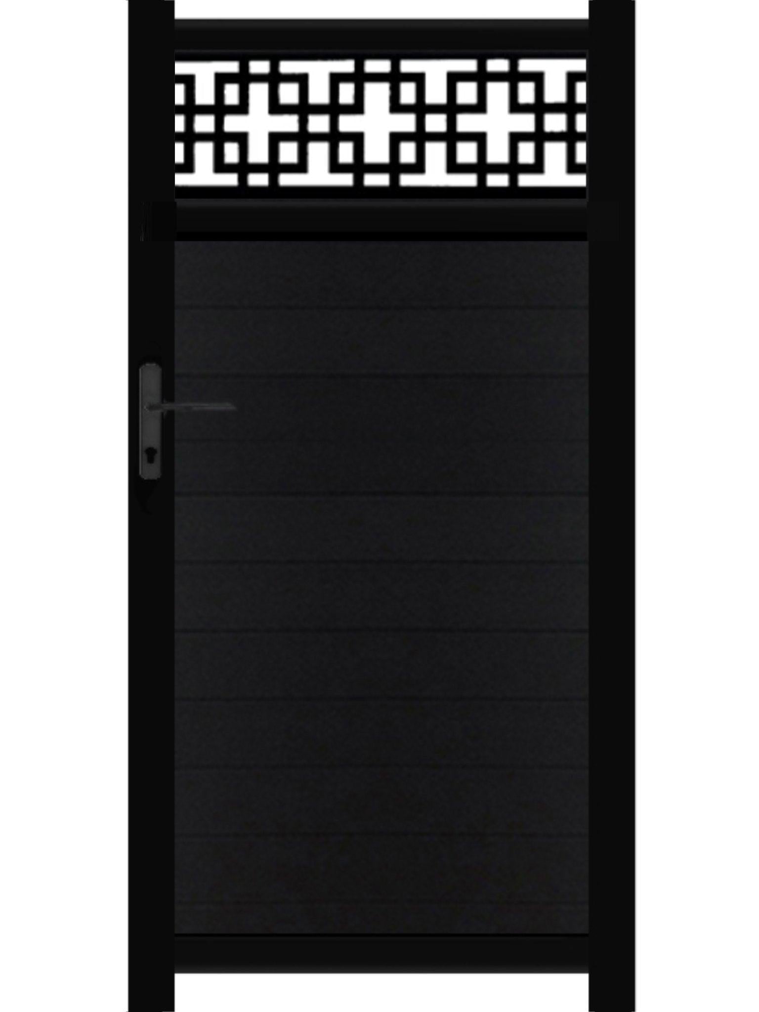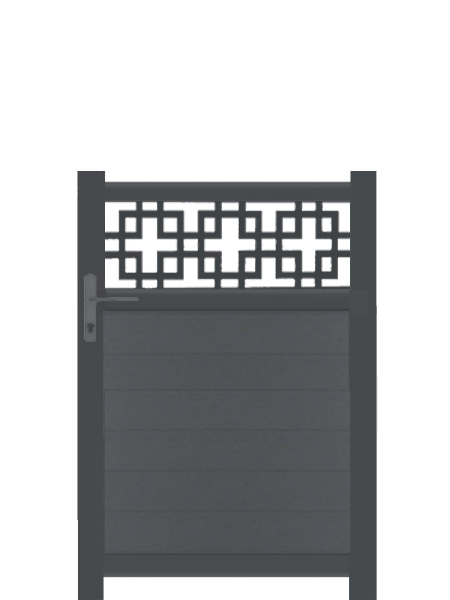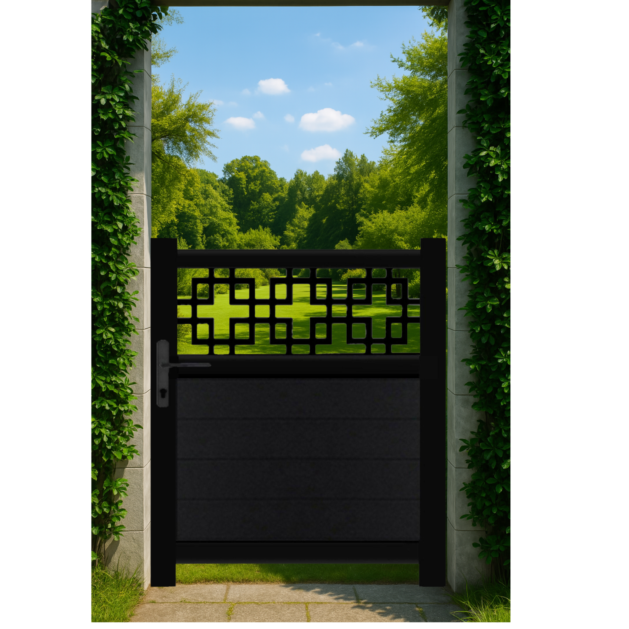 Stunning trellis gate designed to gather both privacy and style with the opacity of the door and the cut designs on top. The Cubed pedestrian gate offers a gorgeous accent for your garden evoking a fresh take on gates with its modern geometric design. Zero maintenance, like everything we do!