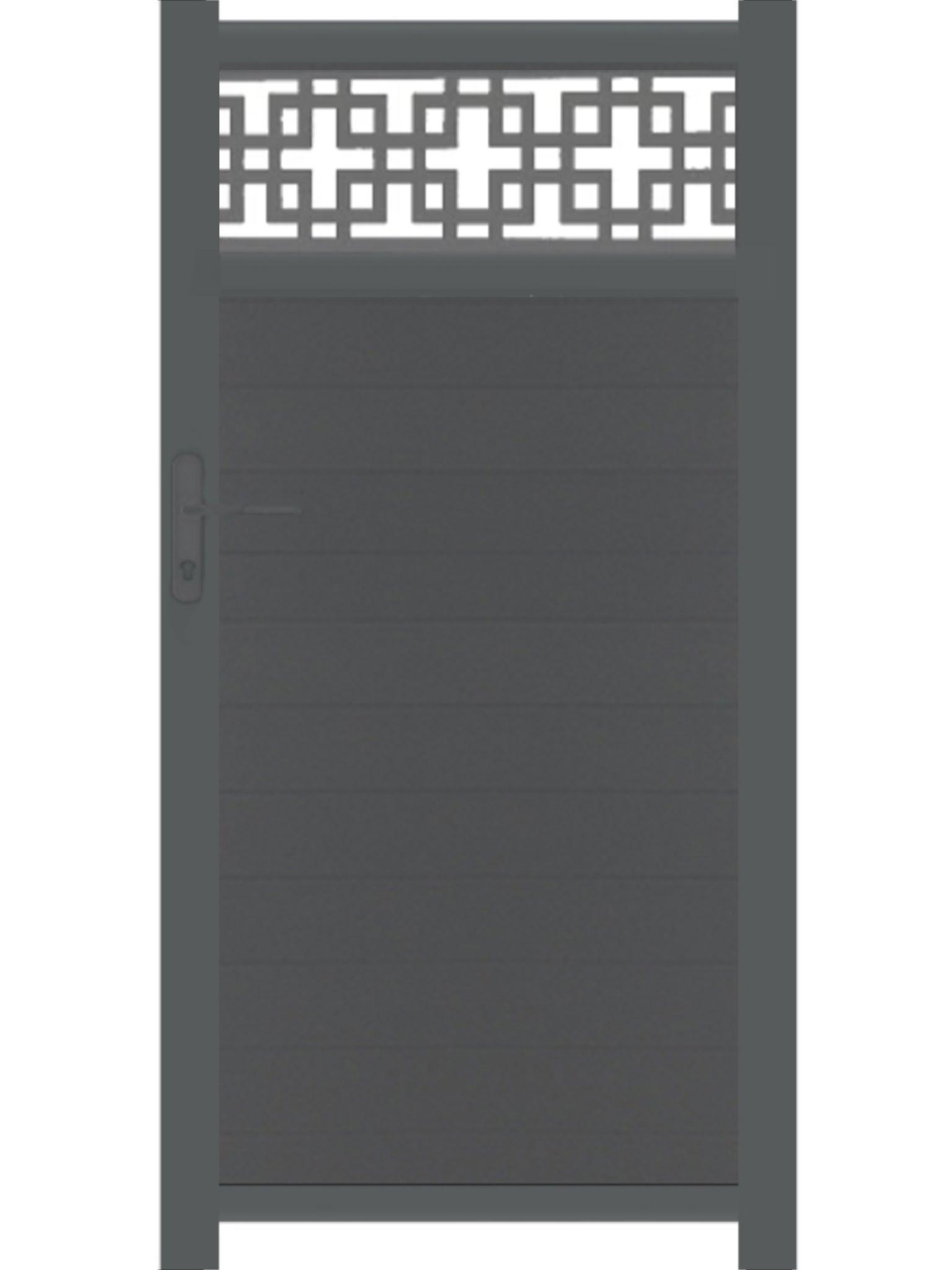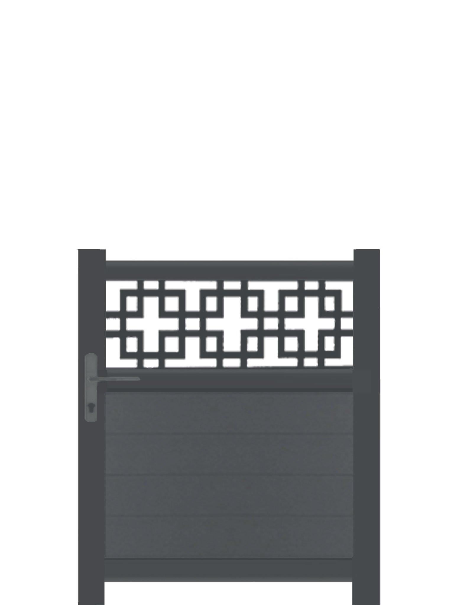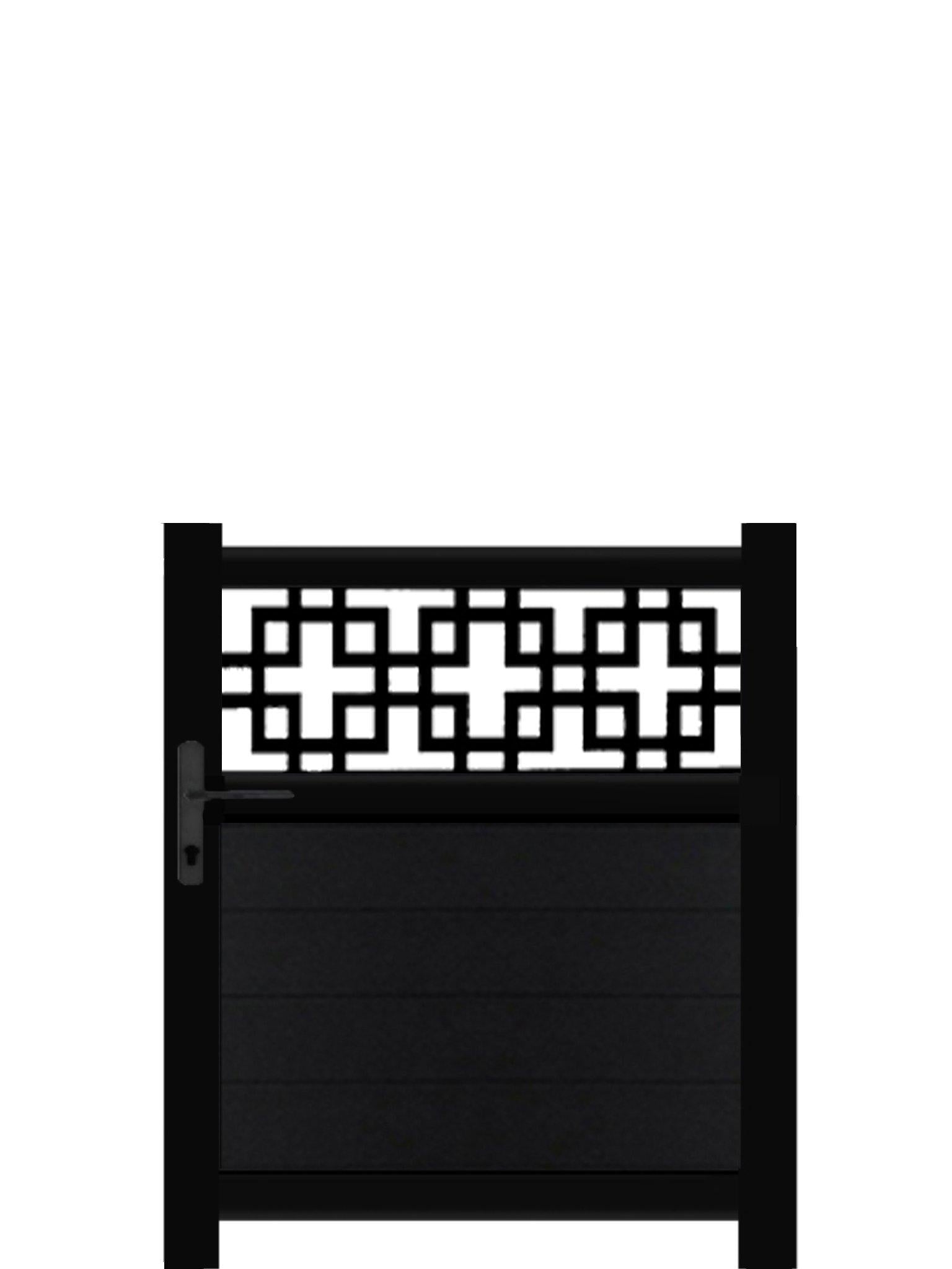 Stunning trellis gate designed to gather both privacy and style with the opacity of the door and the cut designs on top. The Cubed pedestrian gate offers a gorgeous accent for your garden evoking a fresh take on gates with its modern geometric design. Zero maintenance, like everything we do!