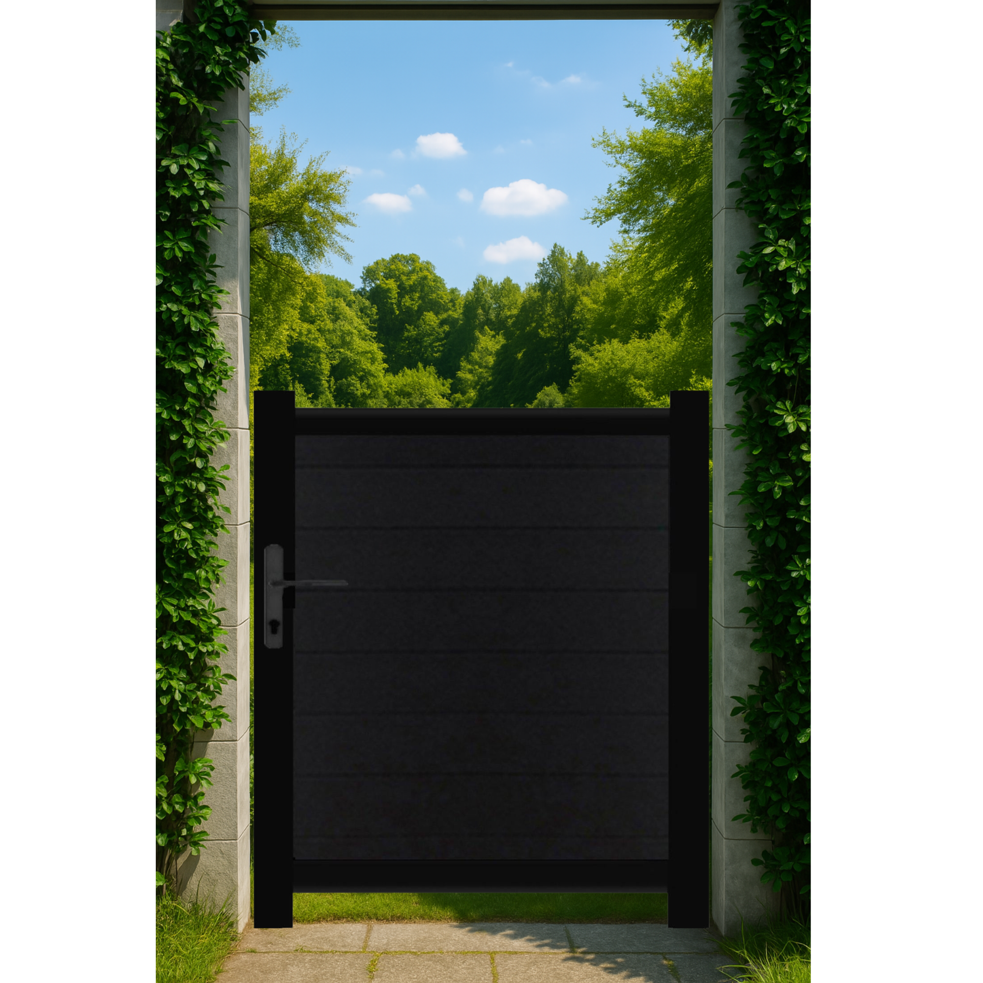 Stunning trellis gate designed to gather both privacy and style with the opacity of the door and the modernity of its components. Zero maintenance, like everything we do!