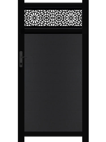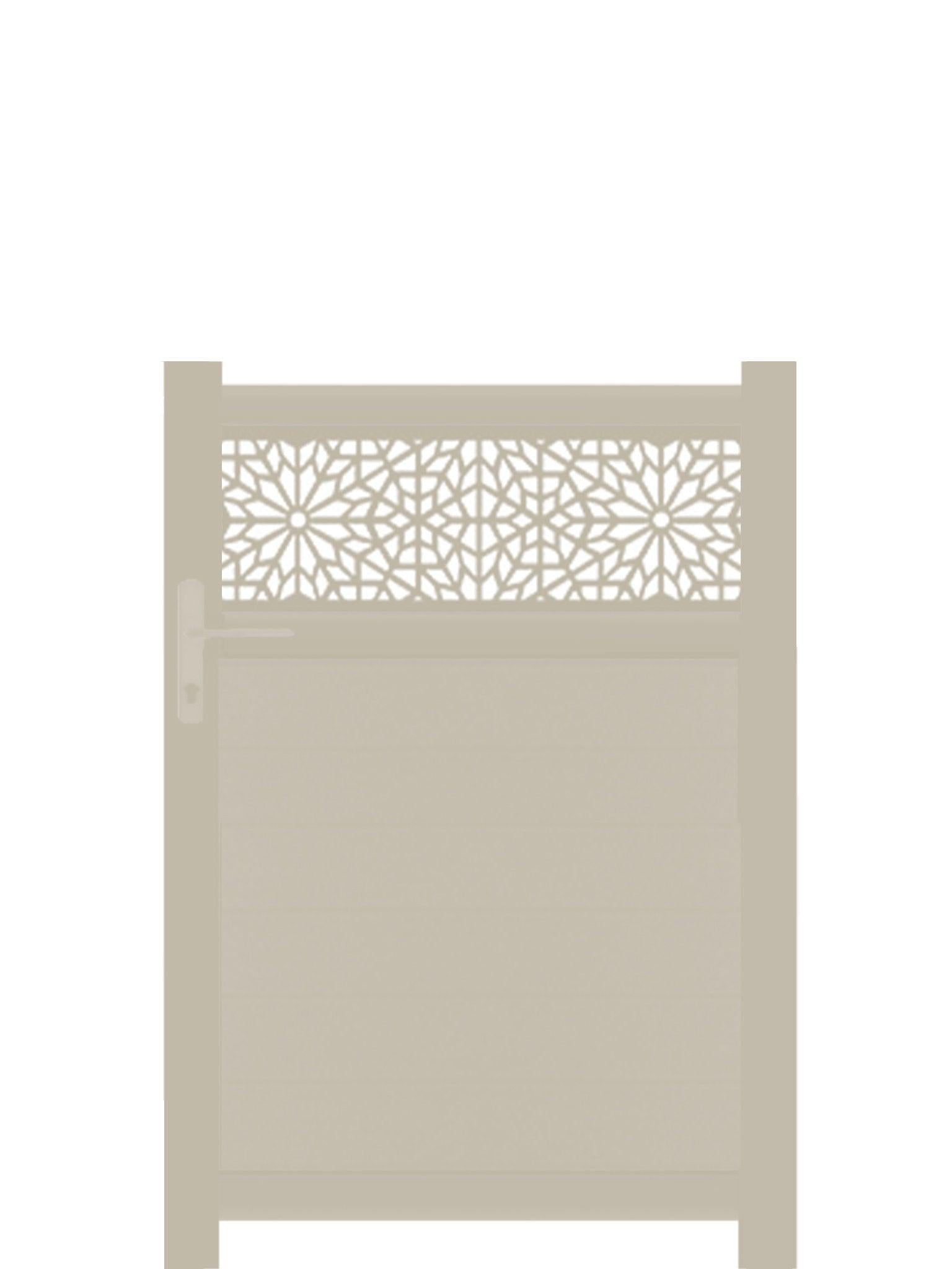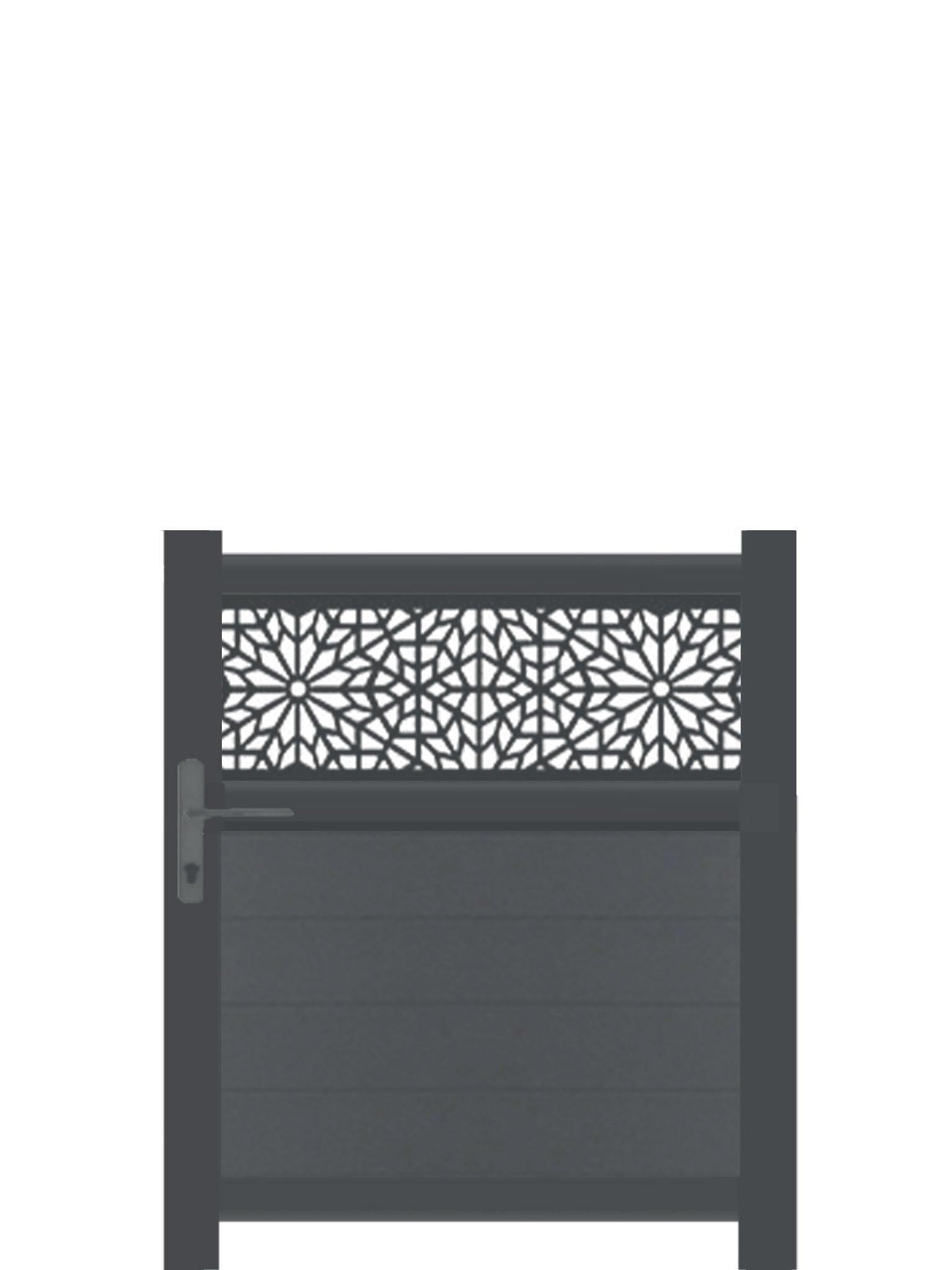 This stunning trellis gate designed to gather both privacy and style with the opacity of the door and the cut designs on top. The Moucharabiya is inspired by the traditional design of windows seen in Arabic architecture, it will provide a beautiful addition to your garden. is It is zero maintenance, like everything we do!