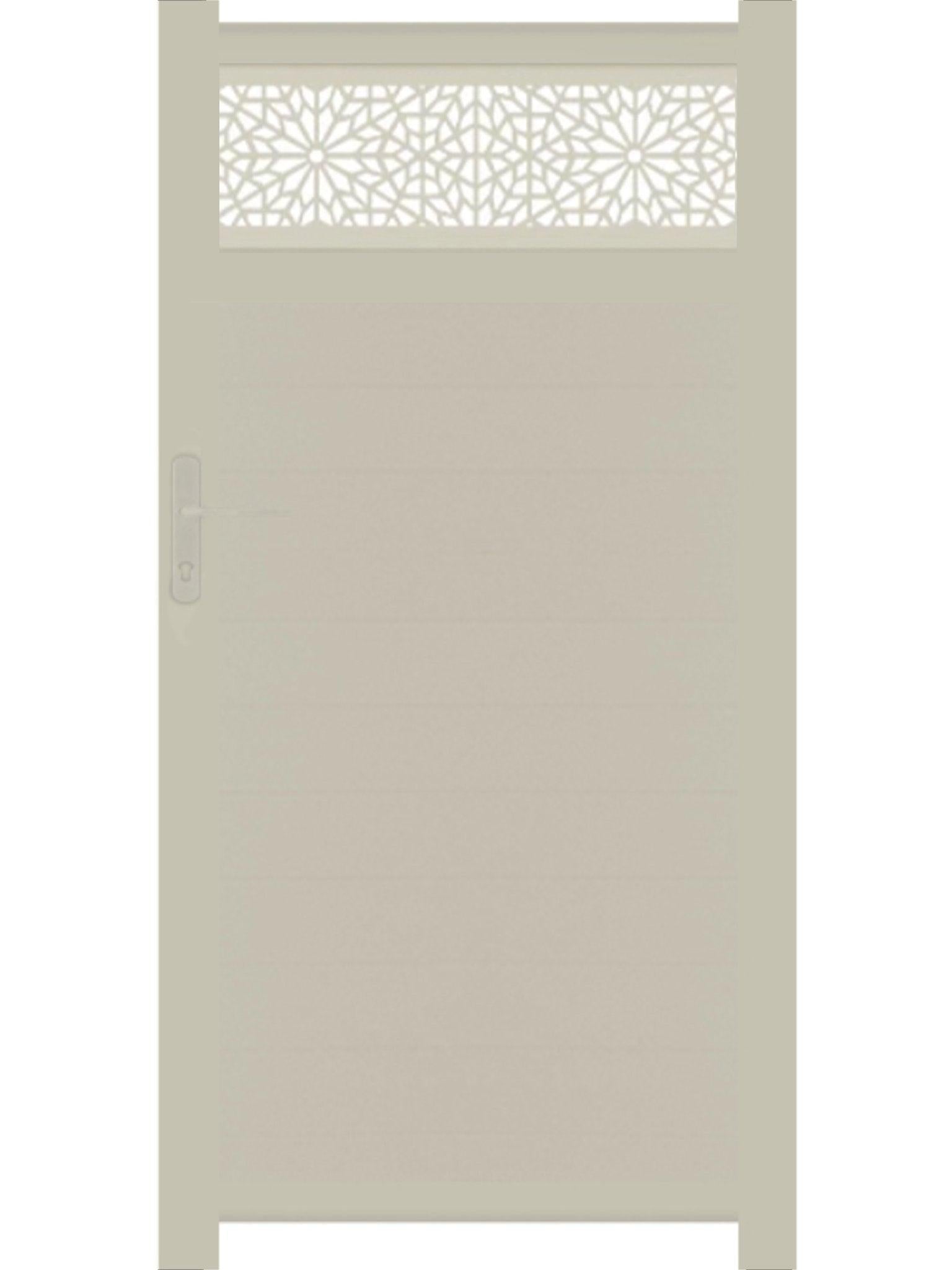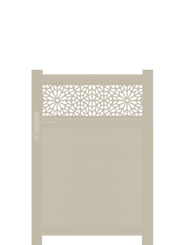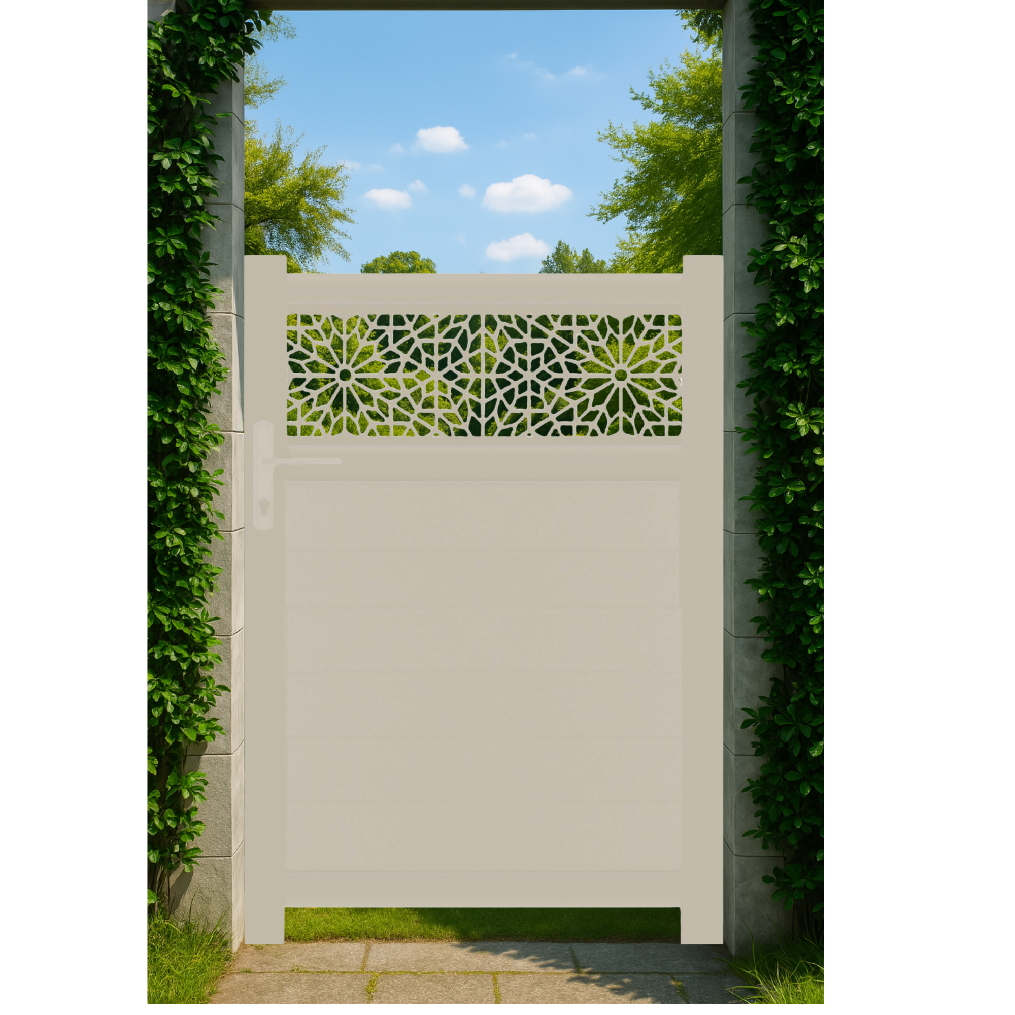 This stunning trellis gate designed to gather both privacy and style with the opacity of the door and the cut designs on top. The Moucharabiya is inspired by the traditional design of windows seen in Arabic architecture, it will provide a beautiful addition to your garden. is It is zero maintenance, like everything we do!