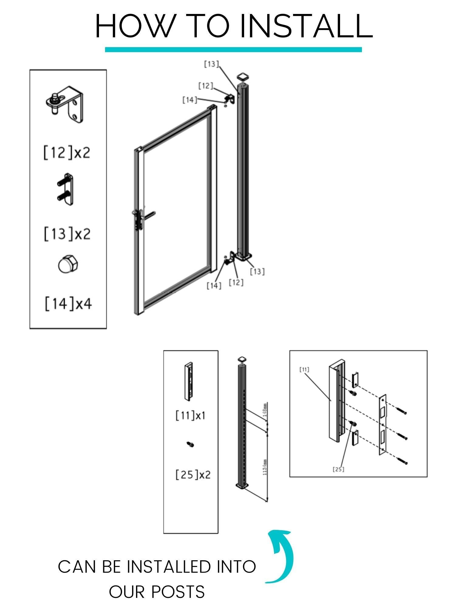 If you are using the gate "stand-alone" in the case where there is no wall to mount the gates you can use our matching aluminium posts which can either be drilled onto a hard surface or set in concrete.
