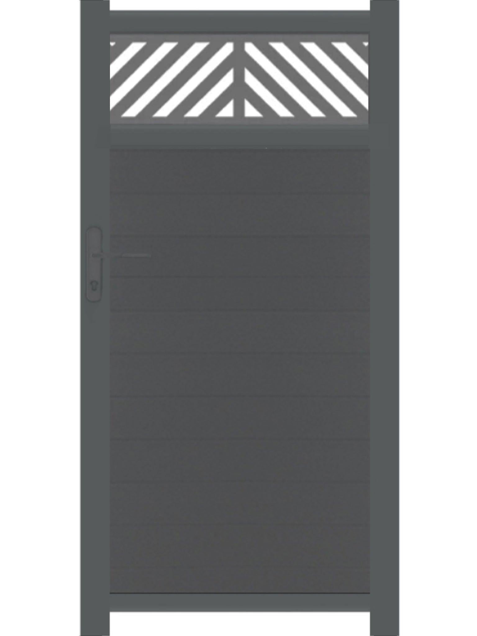 Stunning trellis gate designed to gather both privacy and style with the opacity of the door and the cut designs on top. There's something that takes your breath away looking at the rows of perfect diagonal symmetrical lines featured in our Vector gate. Zero maintenance, like everything we do!