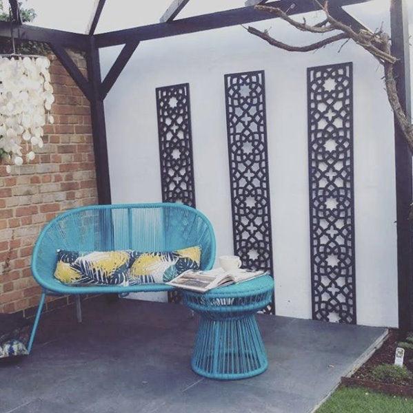 The Alhambra Garden Trellis is the perfect accent for your garden evoking a modern take on a Middle Eastern style garden setting, with its floral pattern made up of geometric shapes. Made of wood plastic composite, you don't have to worry about ongoing maintenance.