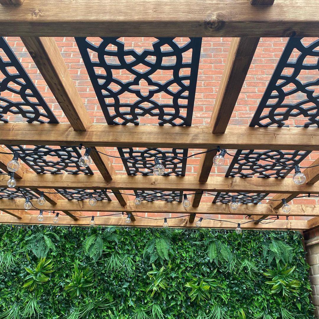 This geometric trellis looks gorgeous in the winter when climbing plants die back. This gives you a unique focal point to your garden while your plants are re-charging. In the spring and summer, you can enjoy the lush leaves and blooms that grow up its unique design while providing a striking backdrop to admire them. The contours and textures of your brickwork and fence panel will be visible through the pattern on the trellis panel, enhancing its aesthetic design.