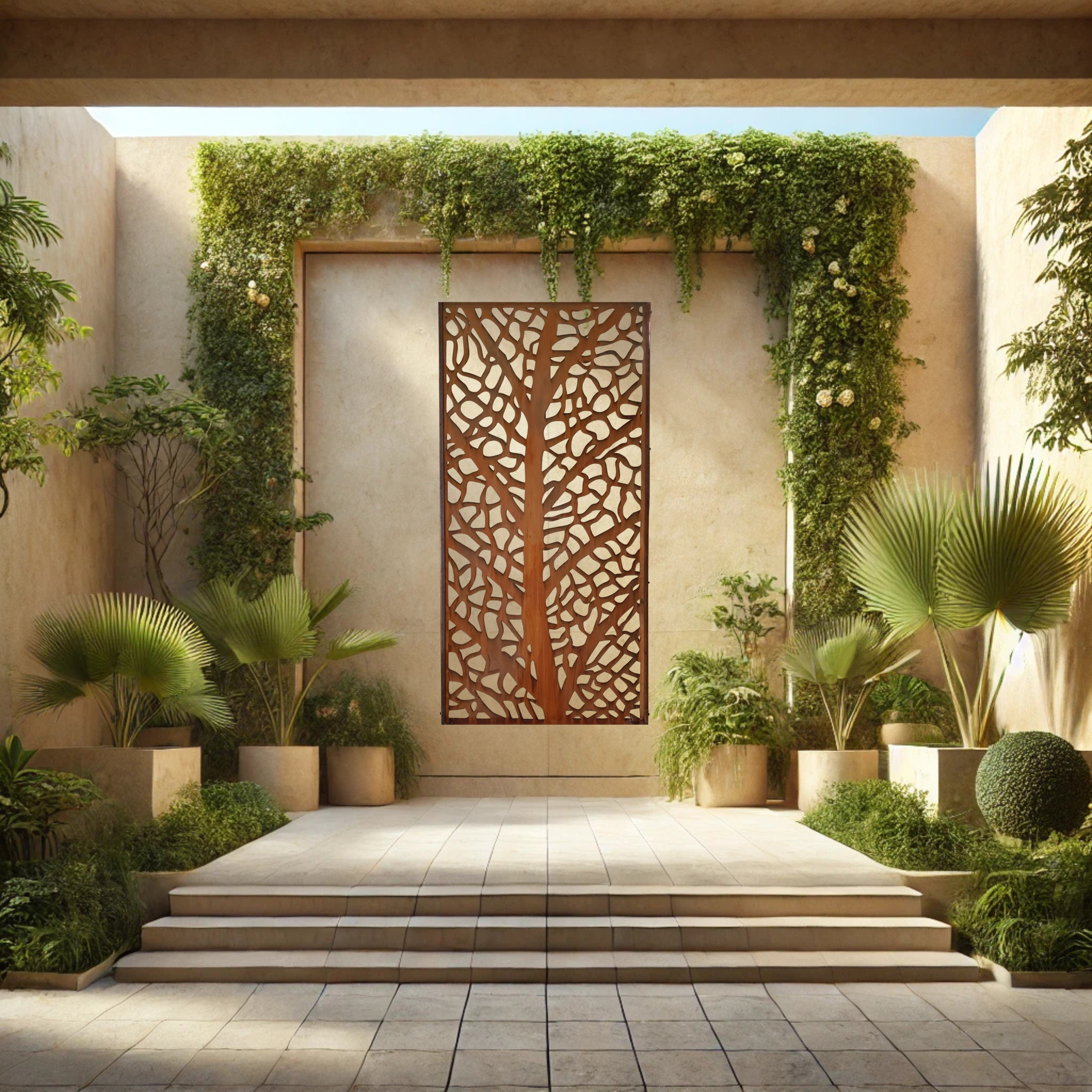 L'Arbre brings the timeless elegance of botanical patterns to your garden. We initially designed this as a leaf pattern, but many of our clients see it as a tree. Whichever way you see it enjoy this chic pattern without worrying about maintenance. Inspired by the most beautiful patterns found in nature, this Corten garden screen gives stylish privacy, without blocking out all of your sunshine. Use as a stand-alone garden feature (by adding our corten posts or along borders to re-imagine fencing.