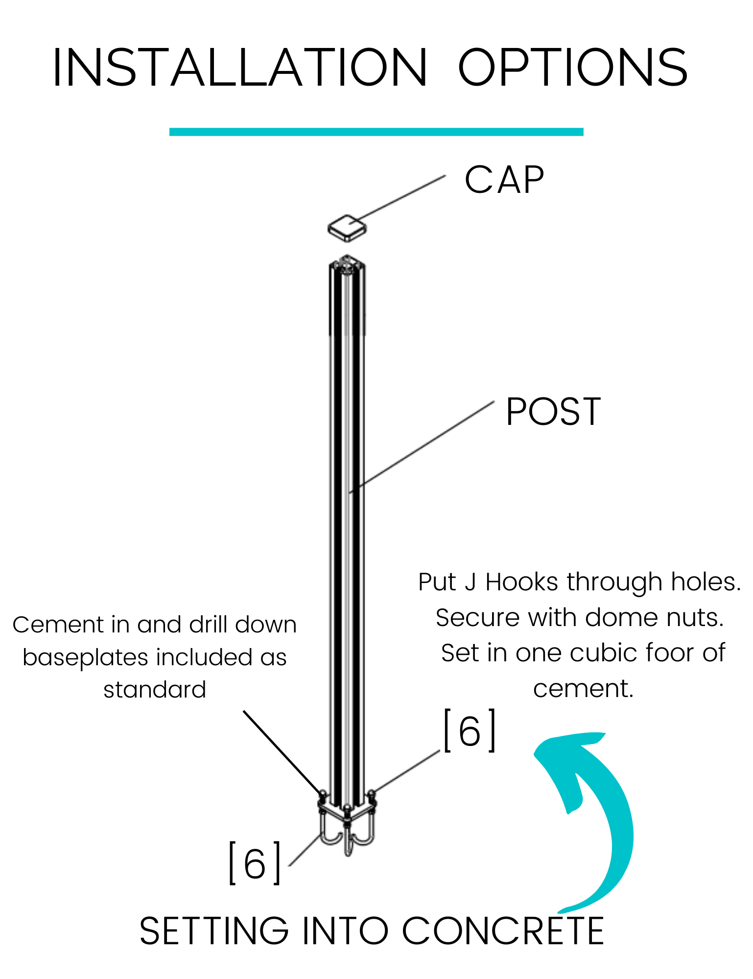 • Choose what post base work for your surface. We offer fence posts that can be set into concrete, or drilled onto a hard surface, simply choose from the drop-down menu.