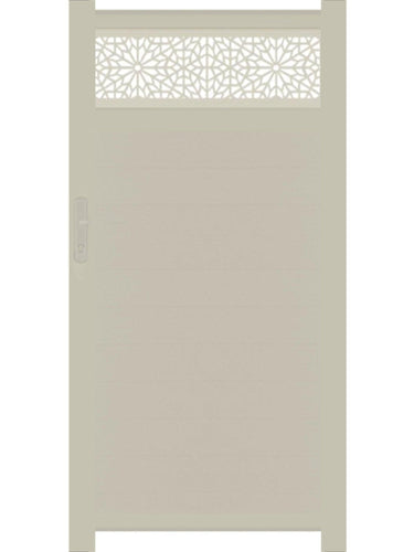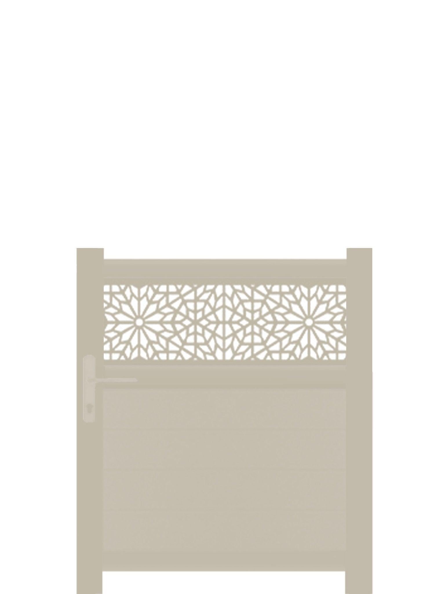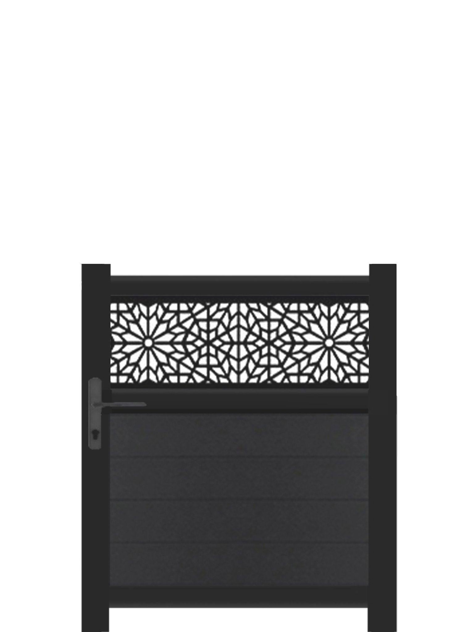 This stunning trellis gate designed to gather both privacy and style with the opacity of the door and the cut designs on top. The Moucharabiya is inspired by the traditional design of windows seen in Arabic architecture, it will provide a beautiful addition to your garden. is It is zero maintenance, like everything we do!