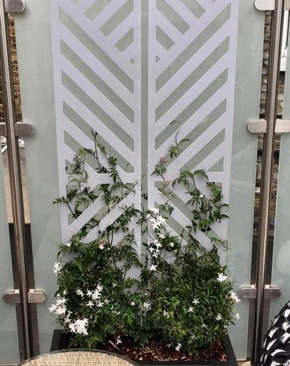 This geometric trellis looks gorgeous in the winter when climbing plants die back. This gives you a unique focal point to your garden while your plants are re-charging. In the spring and summer, you can enjoy the lush leaves and blooms that grow up its unique design while providing a striking backdrop to admire them. The contours and textures of your brickwork and fence panel will be visible through the pattern on the trellis panel, enhancing its aesthetic design.