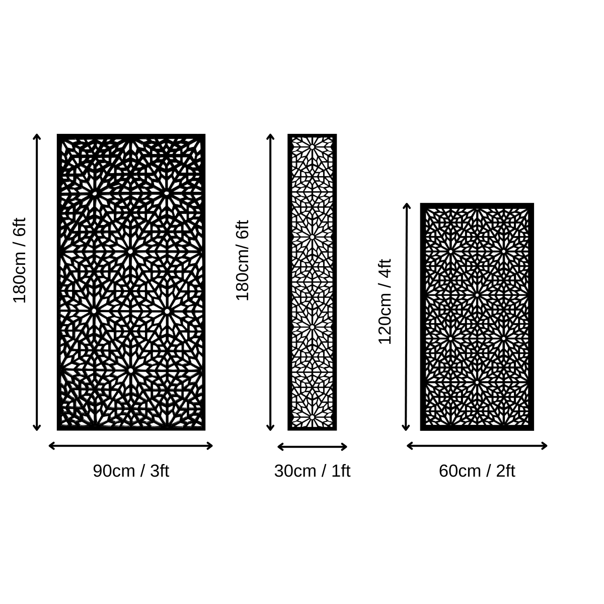 Inspired by traditional geometric window patterns, these outdoor privacy panels create elegant light and shadow while helping to define boundaries, seating areas, and garden structures with a refined decorative finish.