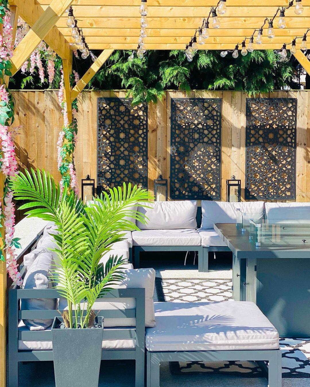 The Alhambra is a modern take on a Middle Eastern and Spanish style, with its floral pattern made up of geometric shapes. Made of composite wood, this contemporary trellis provides the warmth and luxury of a wood finish, with the performance and durability of plastic. It allows you to create a secluded area in your garden, whilst letting though an abundance of light. This can be of real importance if you live in a built-up area and you wish your garden to be a private, intimate space.