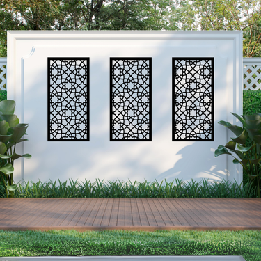 The Alhambra is the perfect screen to add style and privacy to your home or garden. Inspired by the traditional design of windows seen in Arabic architecture, it will provide a beautiful addition to your home. The Alhambra is the perfect accent for your home or garden evoking a modern take on a Middle Eastern style with Spanish influences, with its floral pattern made up of geometric shapes. Made of composite wood, this contemporary trellis provides the warmth and luxury of a wood finish, with the performance and durability of plastic.