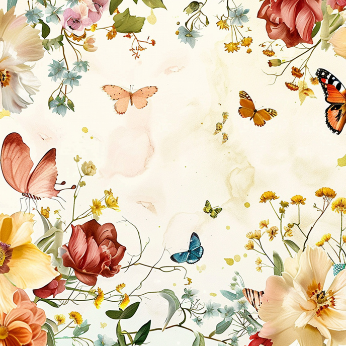 Custom Message Fence Wallpaper blends soft botanical illustration with elegant butterflies, creating a light and uplifting design suitable for both everyday décor and special occasions. A central open space allows for a personalised message to be added, making each piece uniquely meaningful.