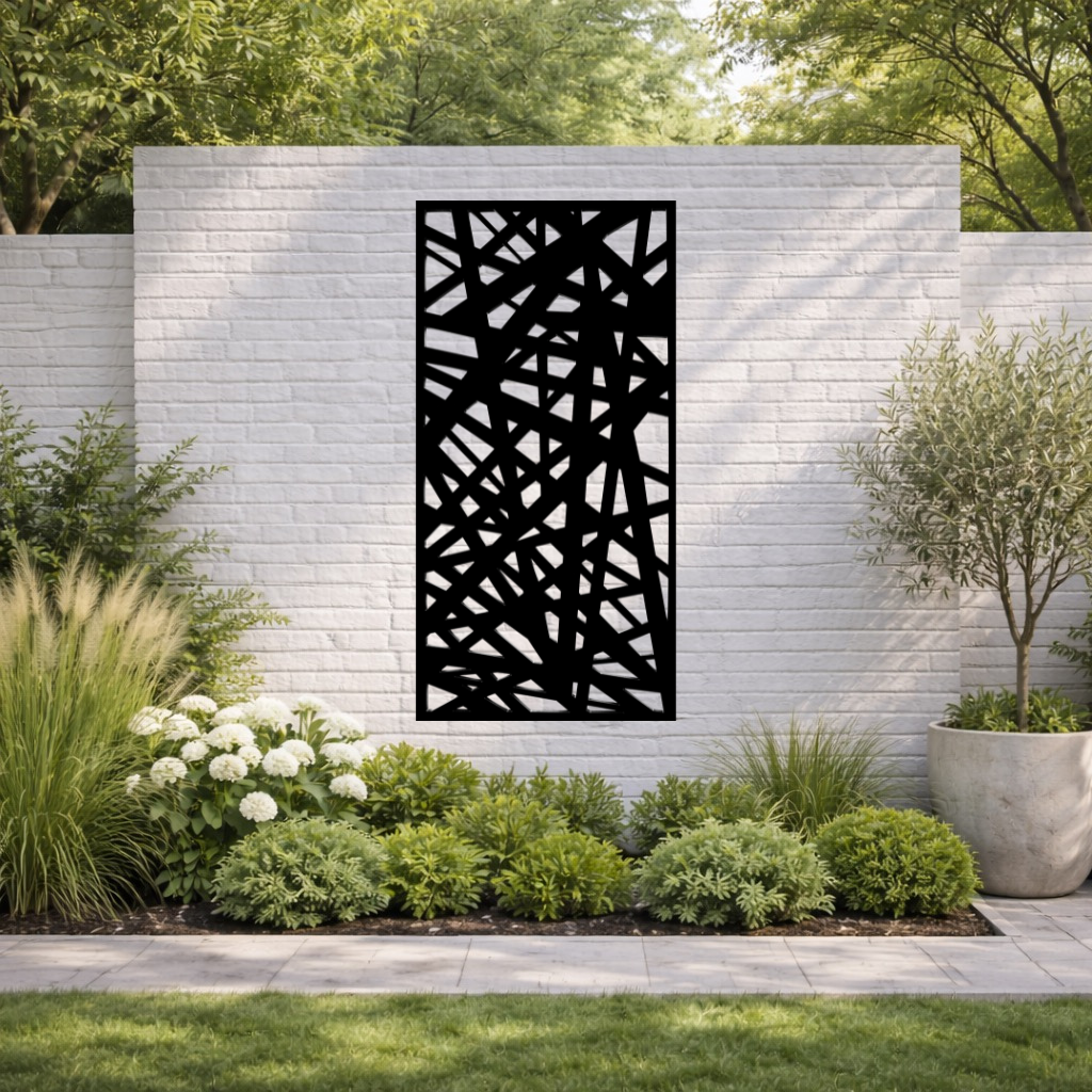 The Kerplunk privacy screen is a stunning, unique design adding personality your garden. Inspired by everyone's childhood family game, its intersecting diagonal lines are both inviting and eye-catching.