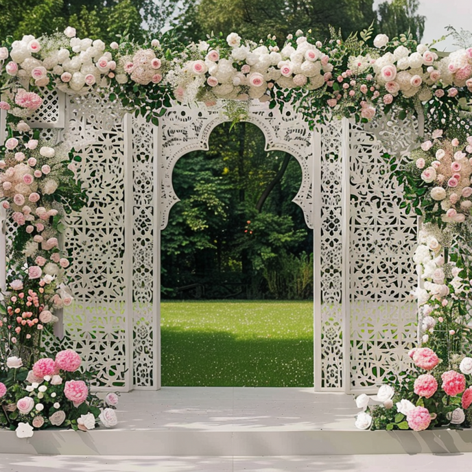 Designed for outdoor use, this wallpaper transforms fences and walls into ceremony-worthy features without the need for physical structures. Its neutral palette and intricate detailing allow it to blend seamlessly into natural surroundings, making it ideal for both permanent garden installations and special occasions.