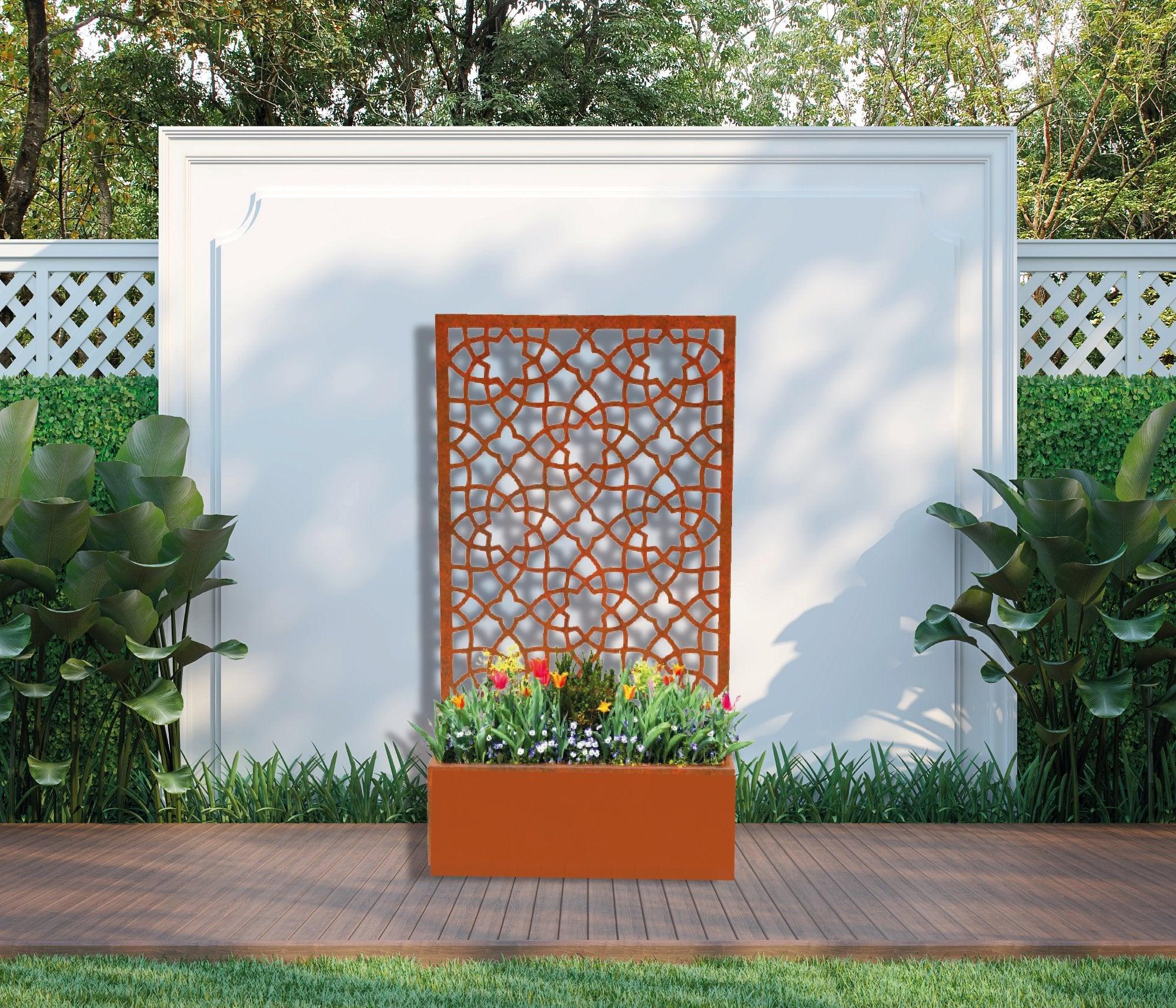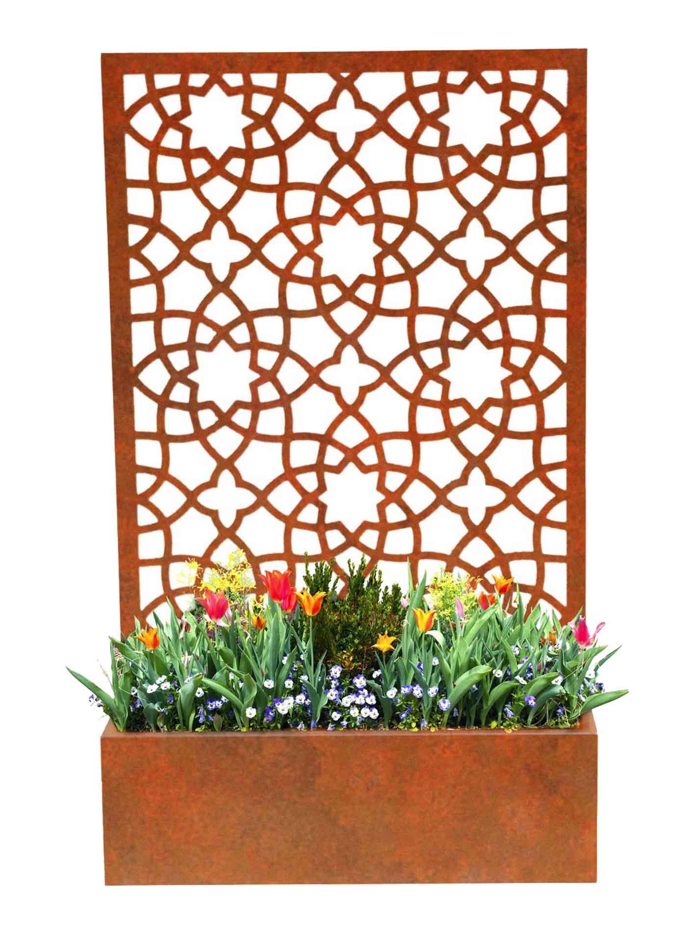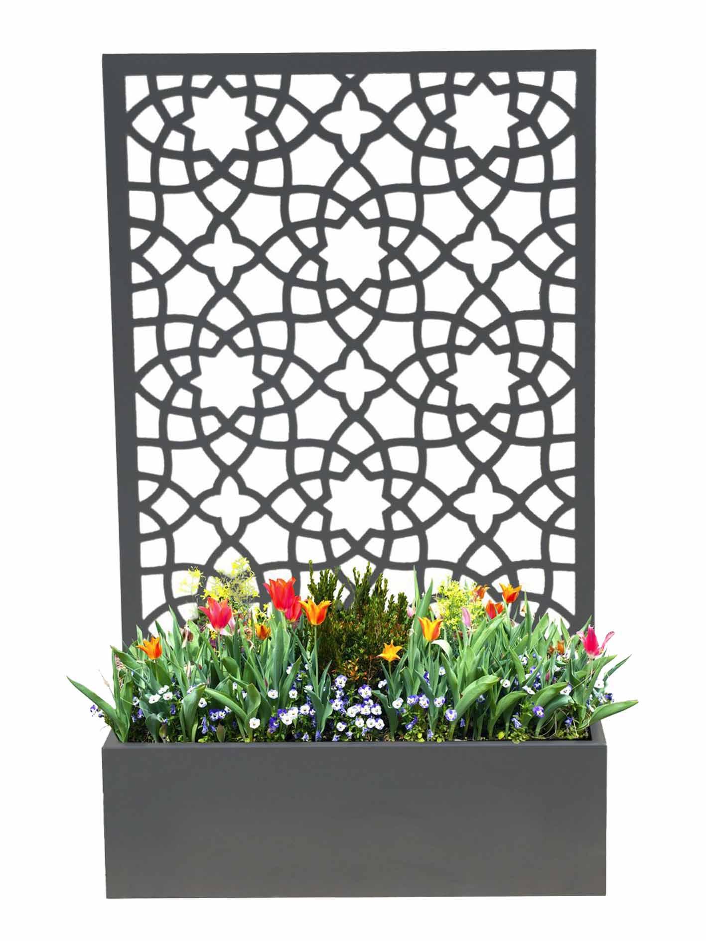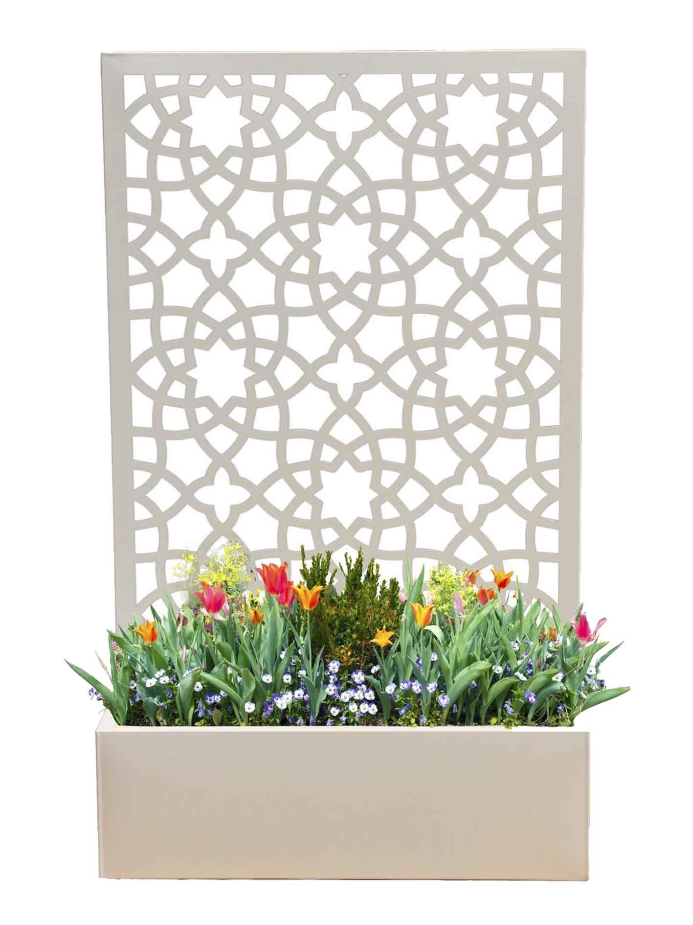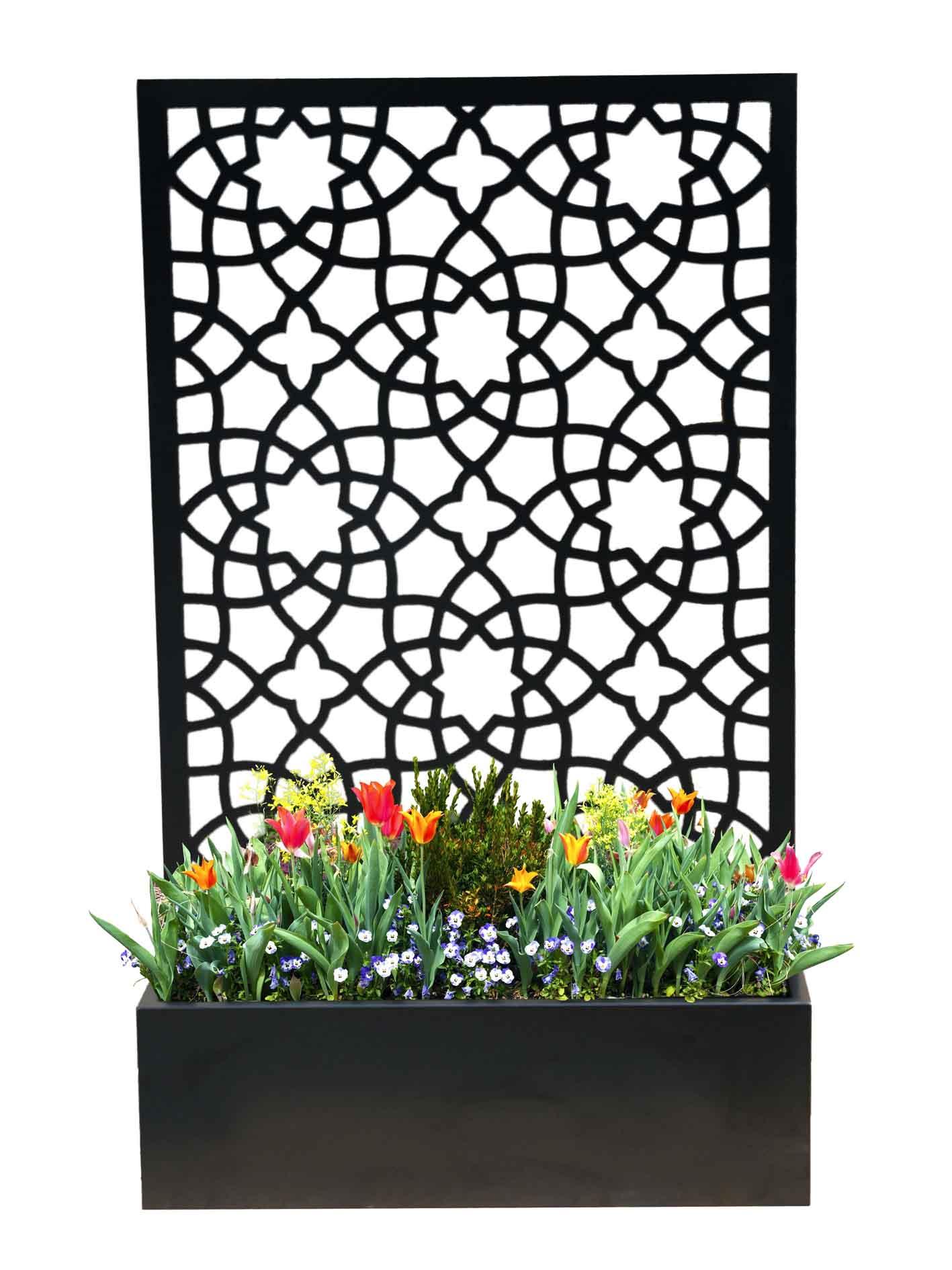 The Alhambra planter is a modern take on a trellis planter. The privacy screen at the back of the planter is designed to support climbing plants while providing an instant feature. The design is open enough to let light through while offering an intricate, beautiful pattern. Unlike wooden alternatives, this is built to last and will not age and weather with time.