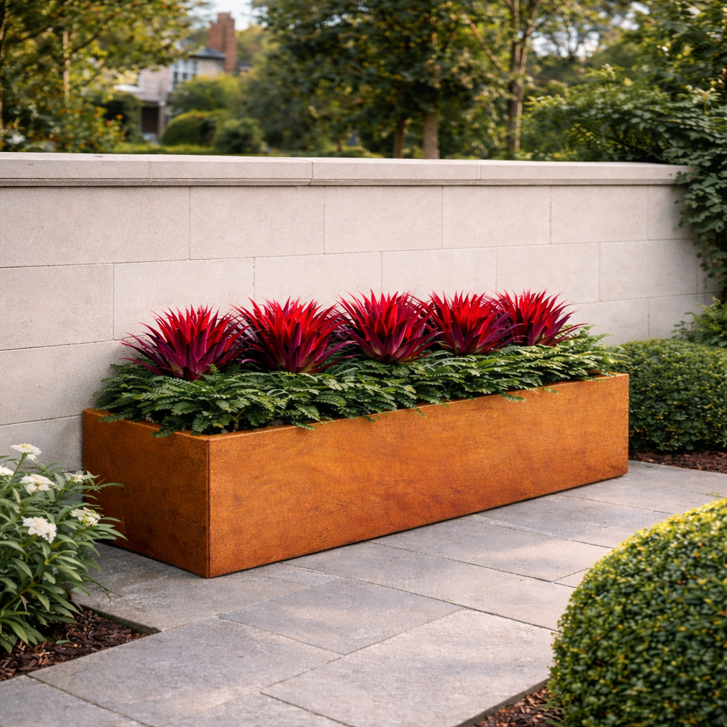 The Corten Rectangular Planter offers a refined, linear planting solution ideal for framing edges, zoning spaces, and creating structured greenery in contemporary gardens.