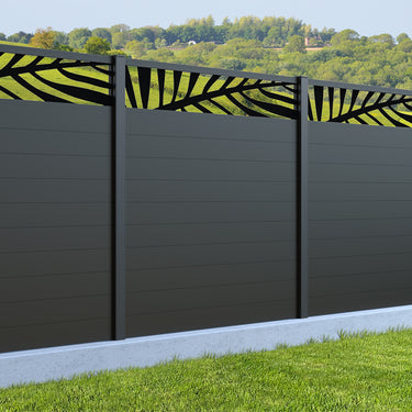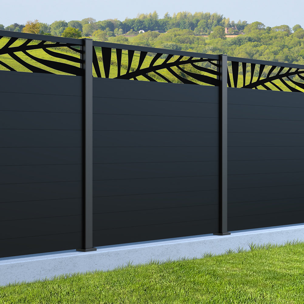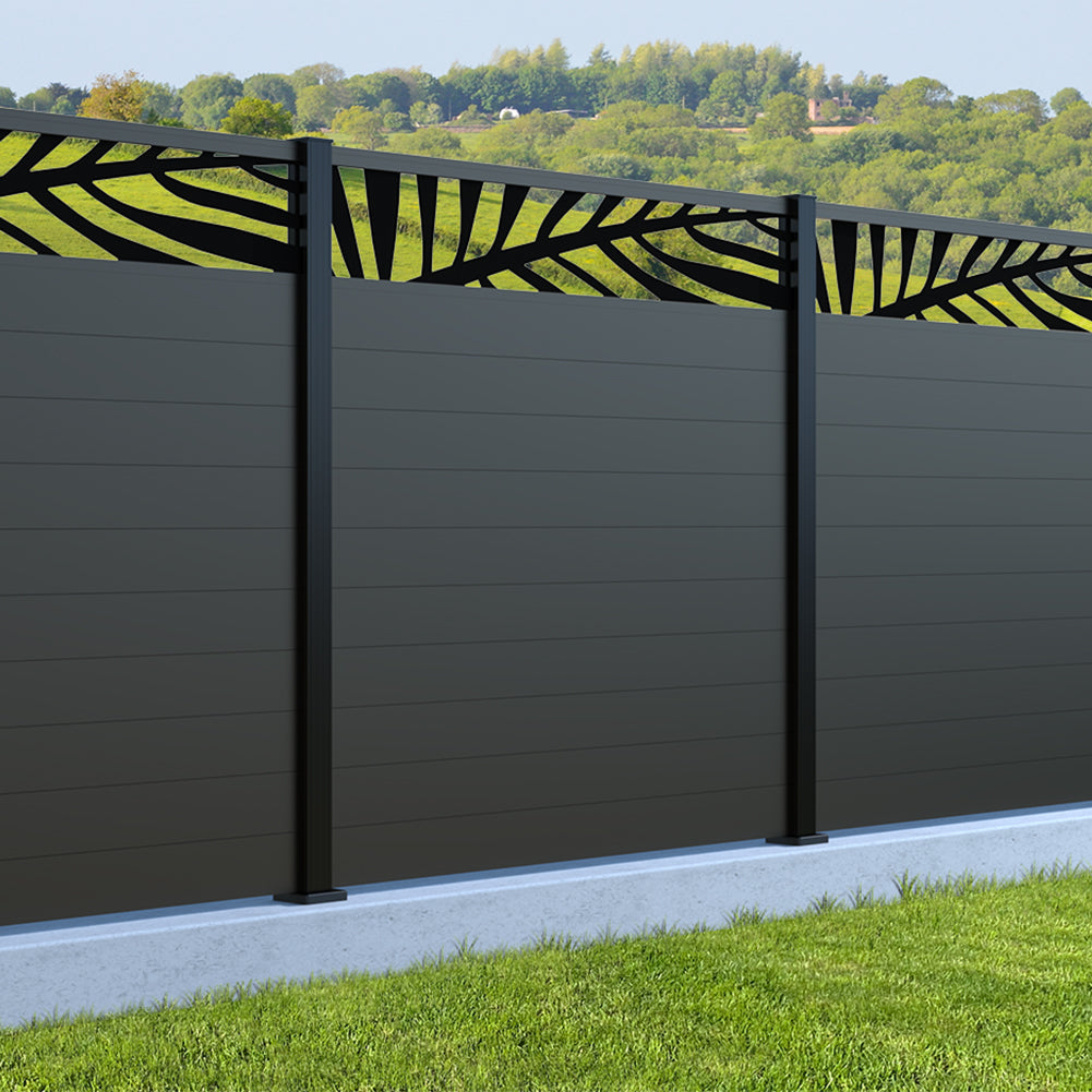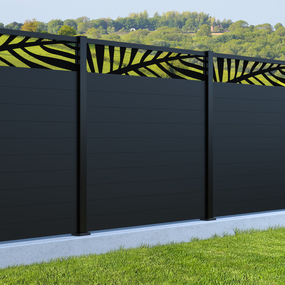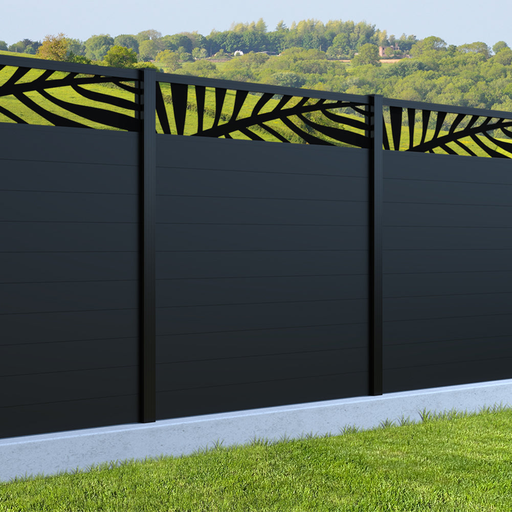 Fence your garden in style with our Palm Laser Aluminium Garden Fence Panels. Designed for modern outdoor spaces, this decorative aluminium garden fencing combines sleek horizontal boards with a stylish laser cut palm design to create a contemporary and private garden boundary.