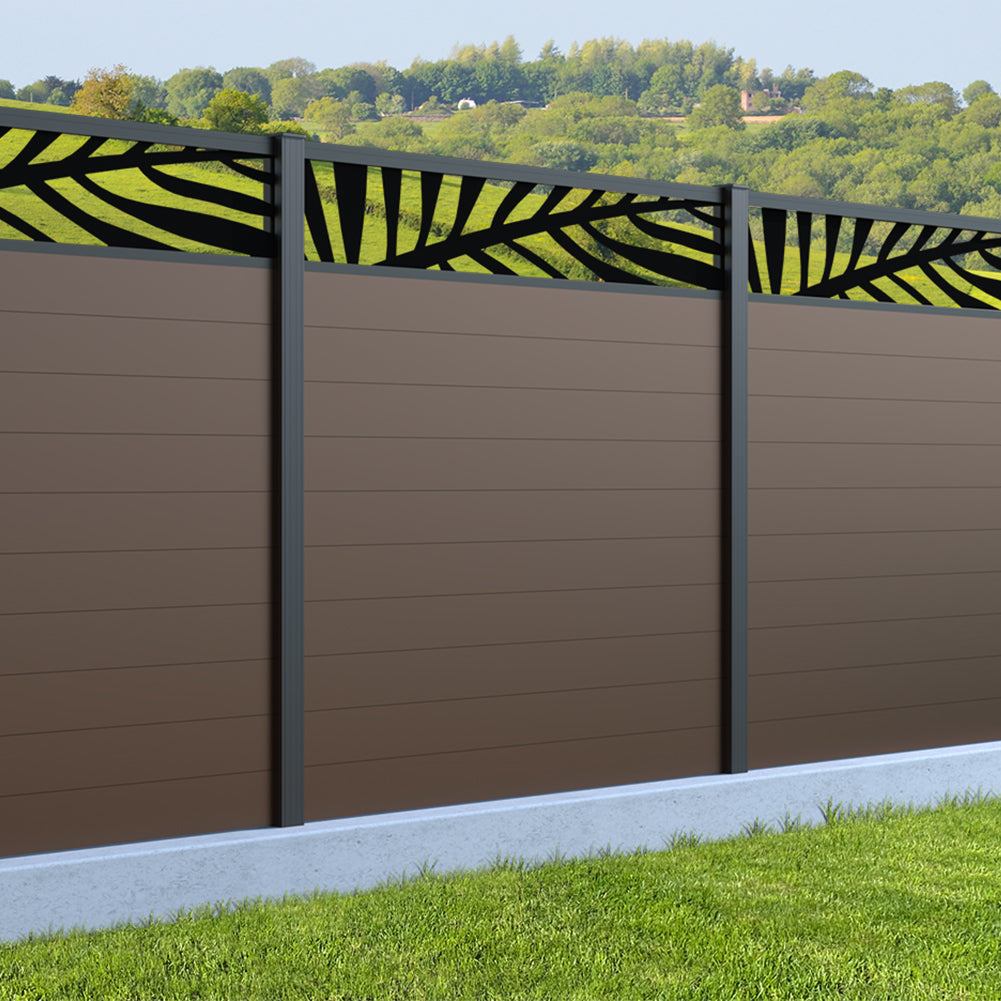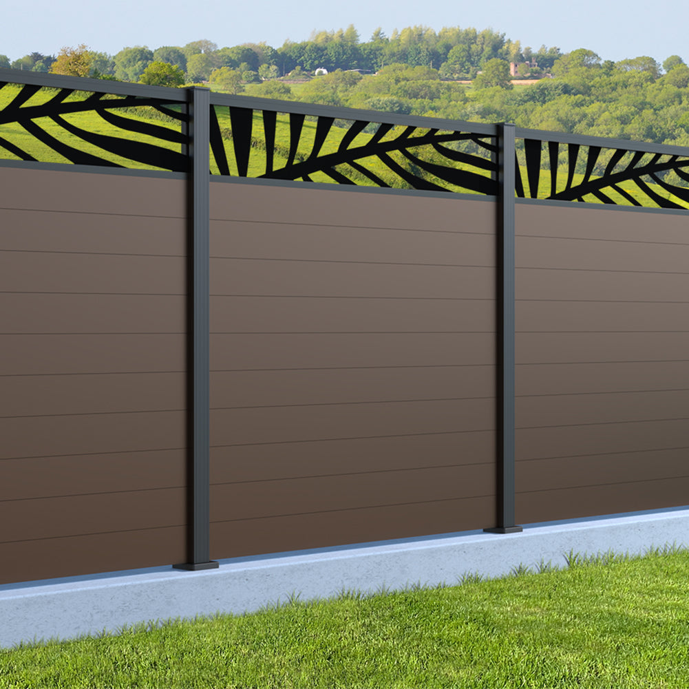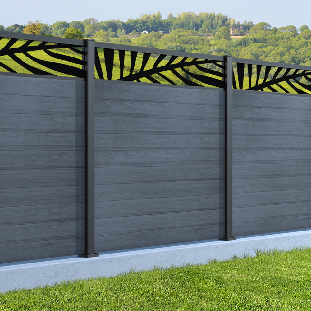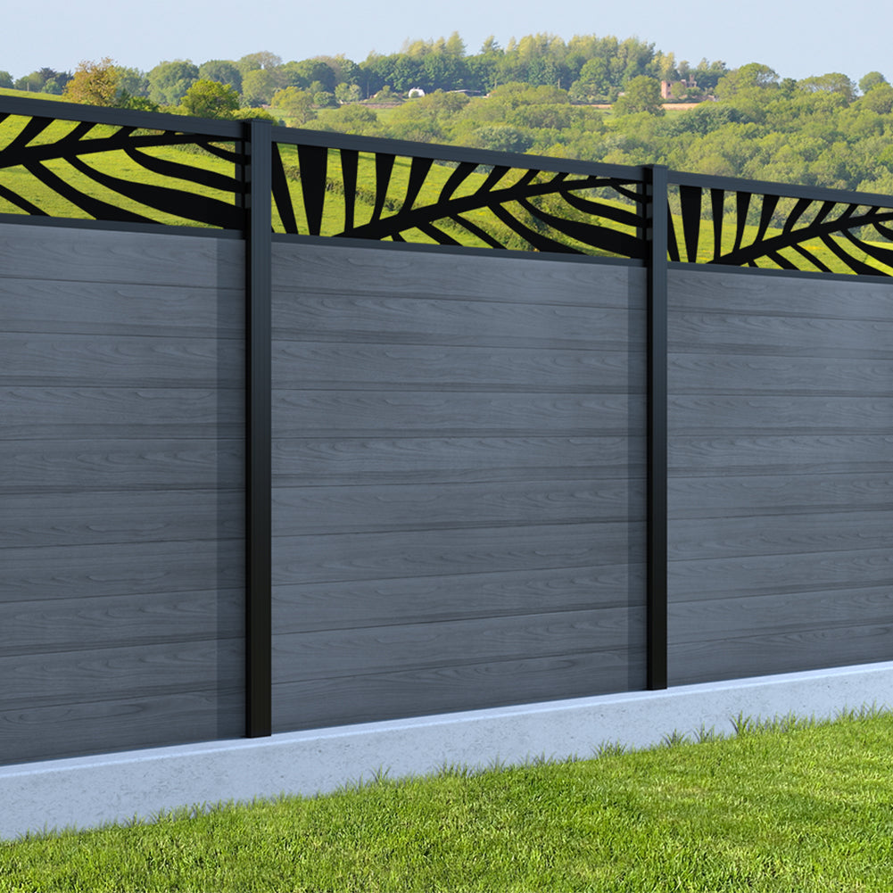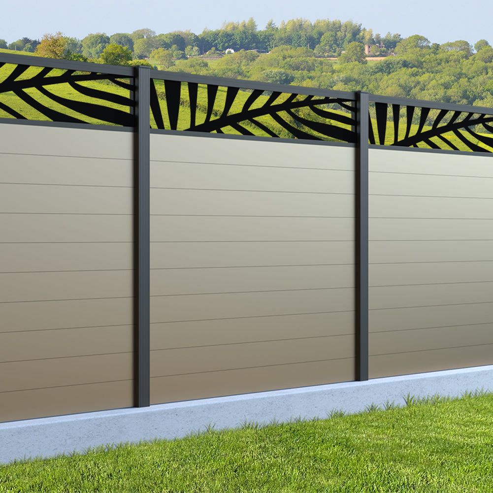 Fence your garden in style with our Palm Laser Aluminium Garden Fence Panels. Designed for modern outdoor spaces, this decorative aluminium garden fencing combines sleek horizontal boards with a stylish laser cut palm design to create a contemporary and private garden boundary.