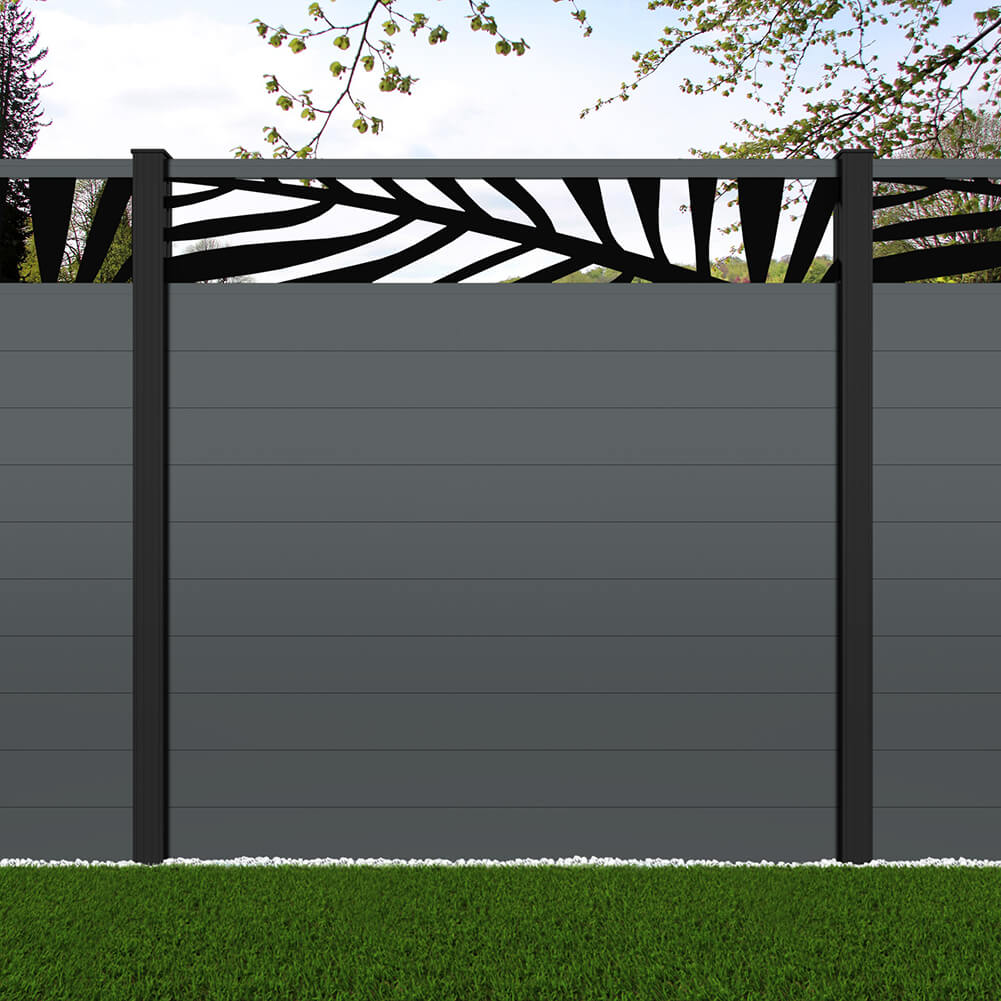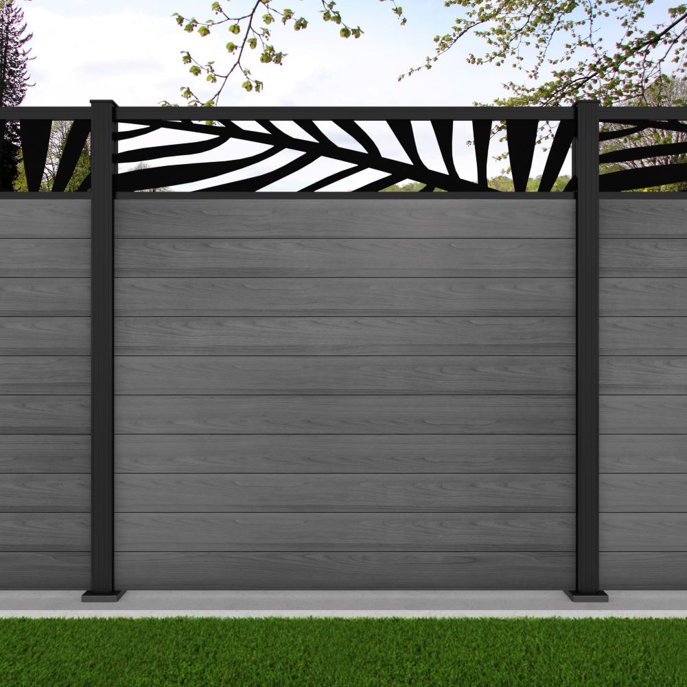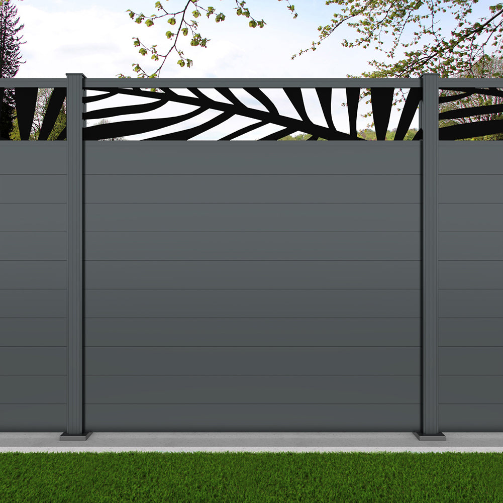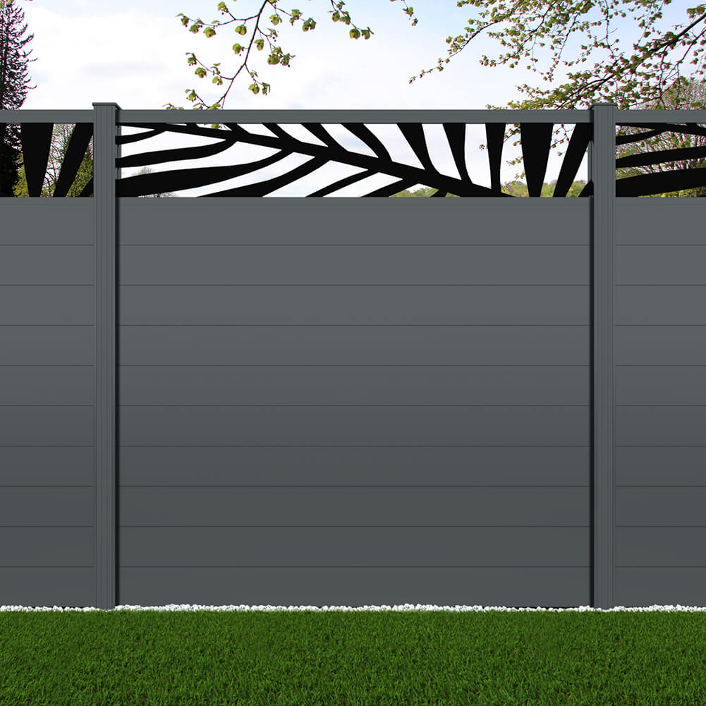 Fence your garden in style with our Palm Laser Aluminium Garden Fence Panels. Designed for modern outdoor spaces, this decorative aluminium garden fencing combines sleek horizontal boards with a stylish laser cut palm design to create a contemporary and private garden boundary.