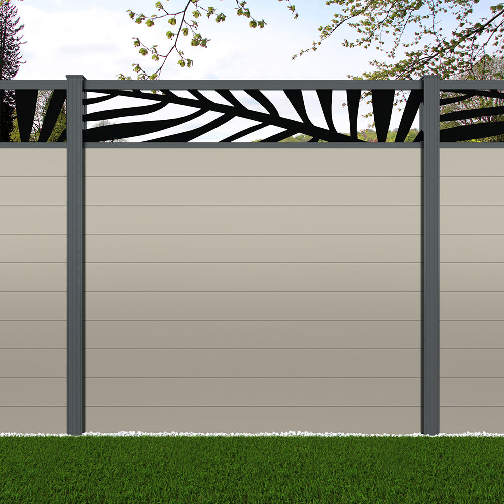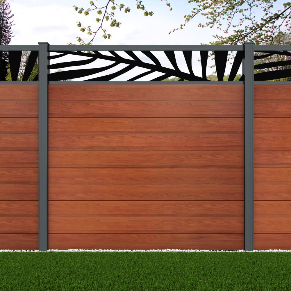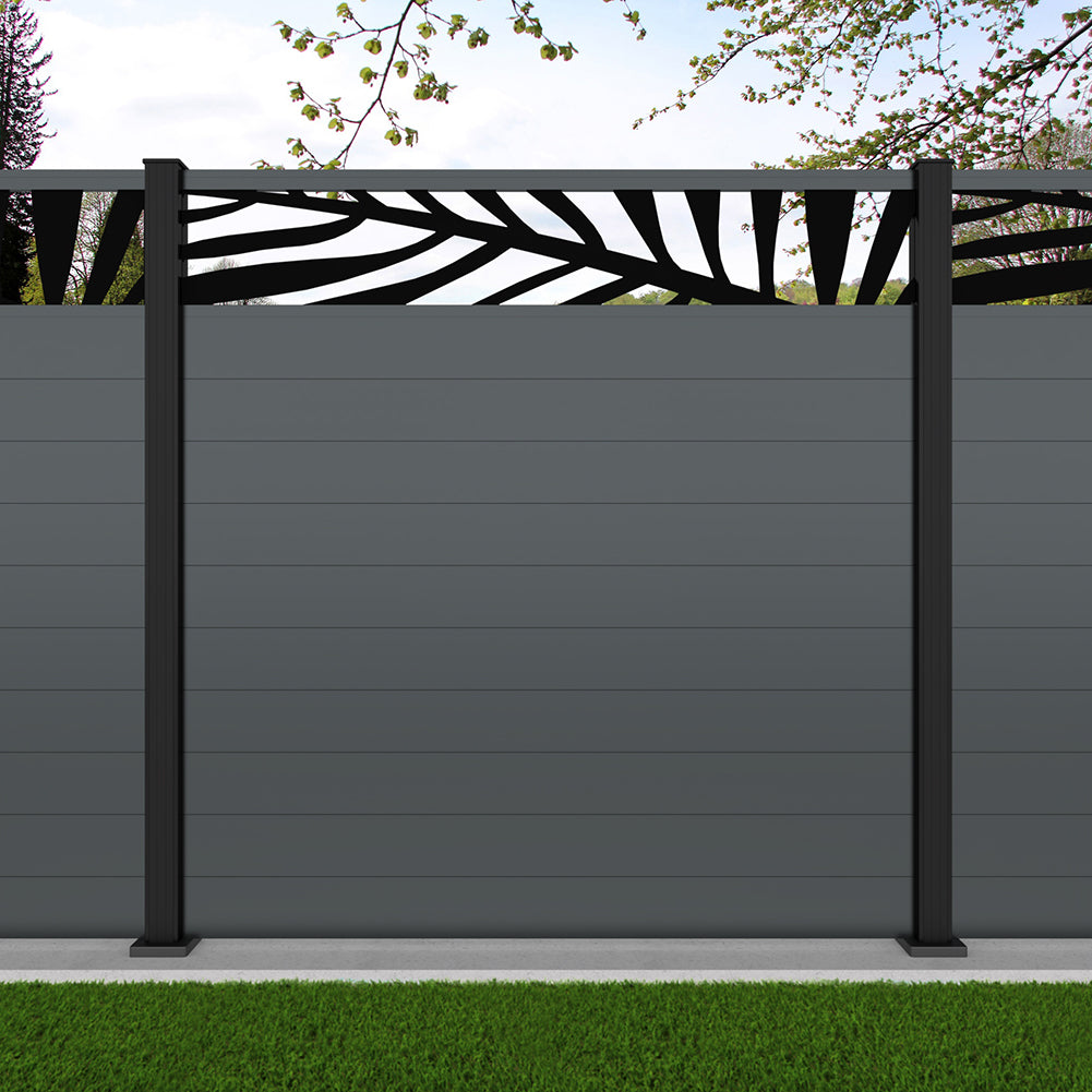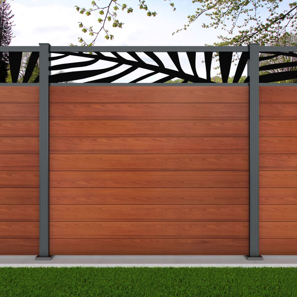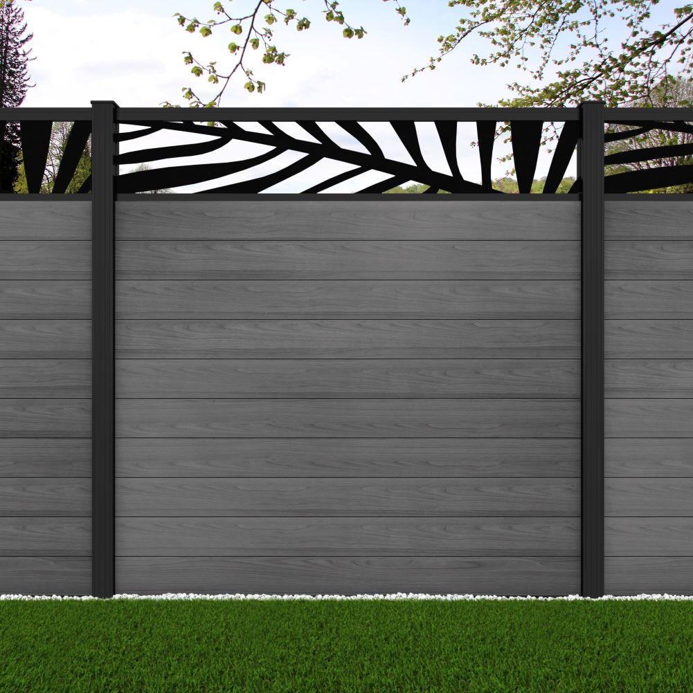 Fence your garden in style with our Palm Laser Aluminium Garden Fence Panels. Designed for modern outdoor spaces, this decorative aluminium garden fencing combines sleek horizontal boards with a stylish laser cut palm design to create a contemporary and private garden boundary.